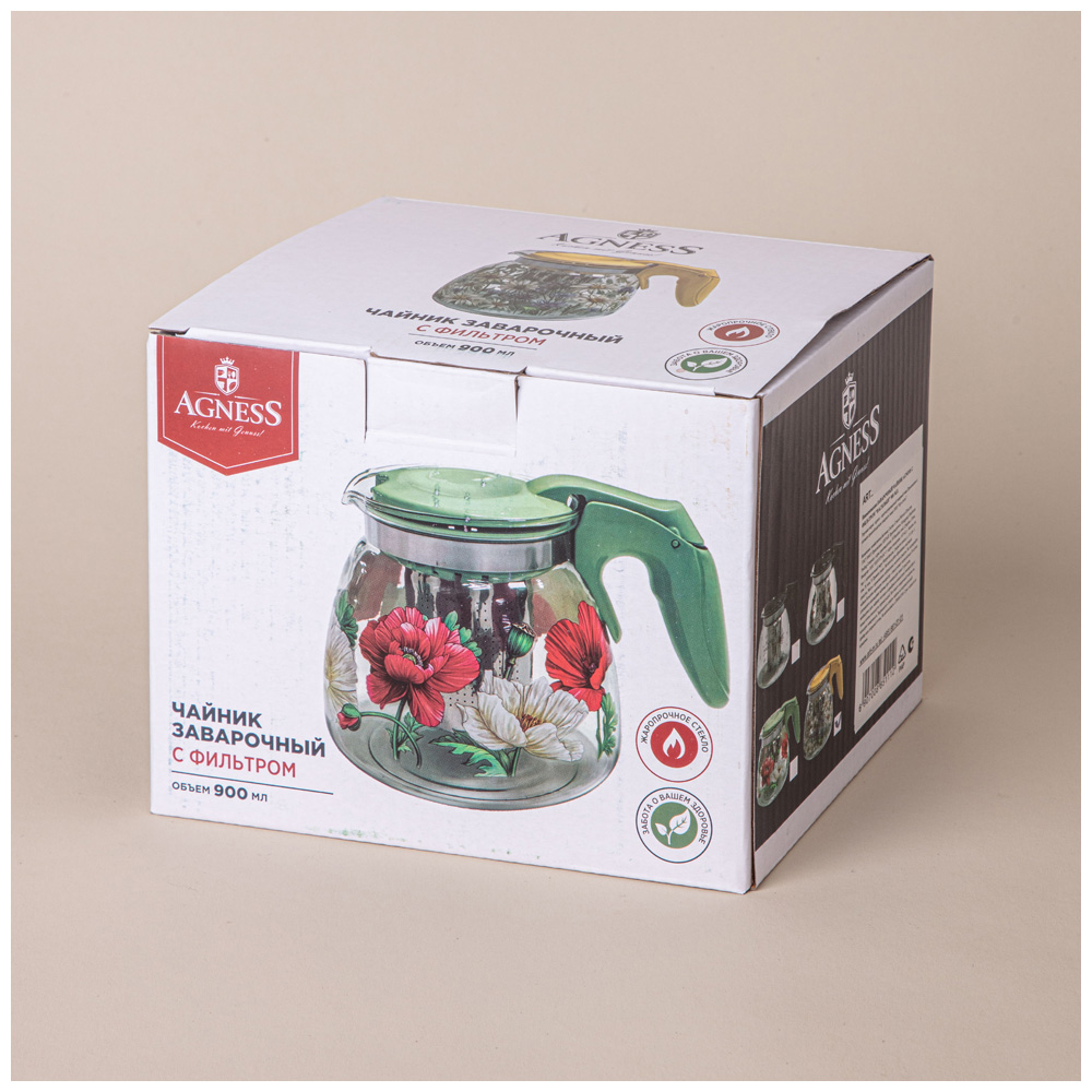 Заварочный стеклянный чайник TM AGNESS является прекрасным украшением стола.