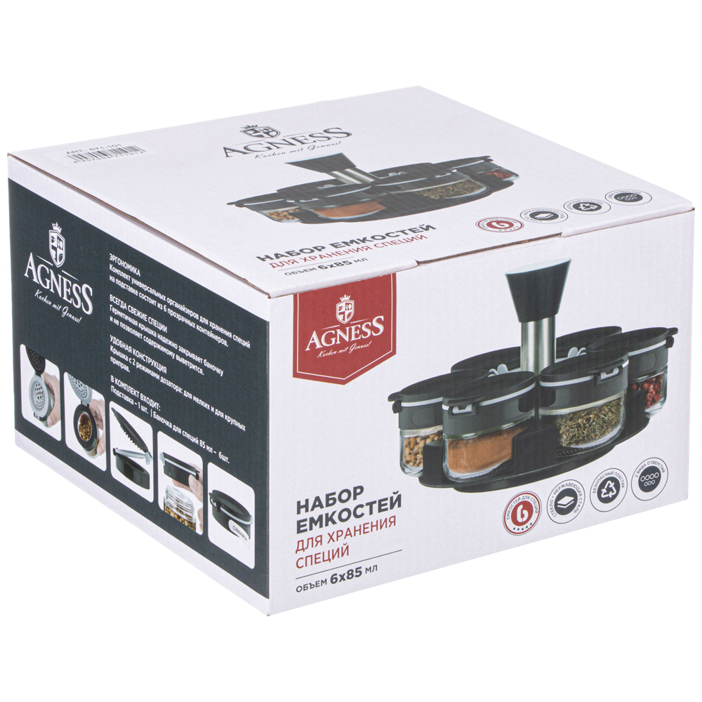 НАБОР ЕМКОСТЕЙ ДЛЯ СПЕЦИЙ 6ШТ 85МЛ НА ПОДСТАВКЕ AGNESS