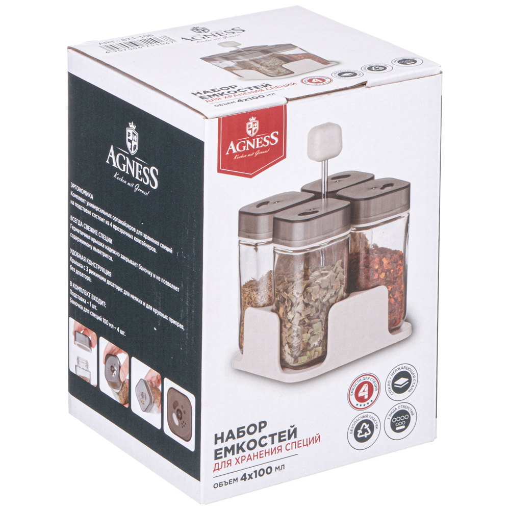 НАБОР ЕМКОСТЕЙ ДЛЯ СПЕЦИЙ 4ШТ 100МЛ НА ПОДСТАВКЕ AGNESS