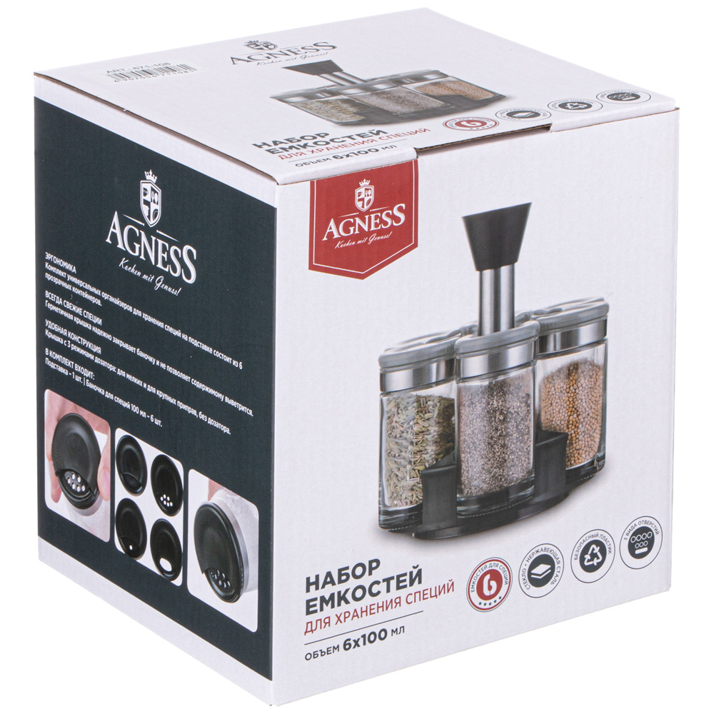 НАБОР ЕМКОСТЕЙ ДЛЯ СПЕЦИЙ 6ШТ 100МЛ НА ПОДСТАВКЕ AGNESS