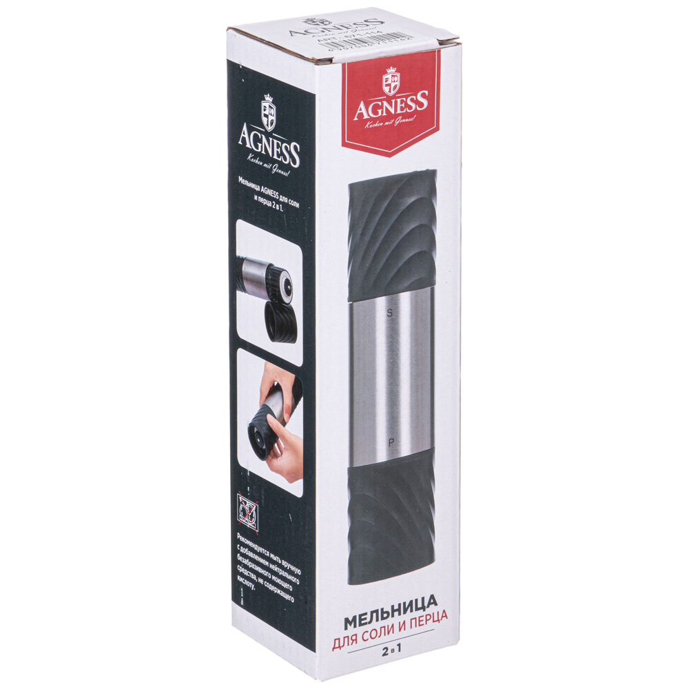 МЕЛЬНИЦА ДЛЯ СОЛИ И ПЕРЦА СЕРАЯ 2 в 1 AGNESS