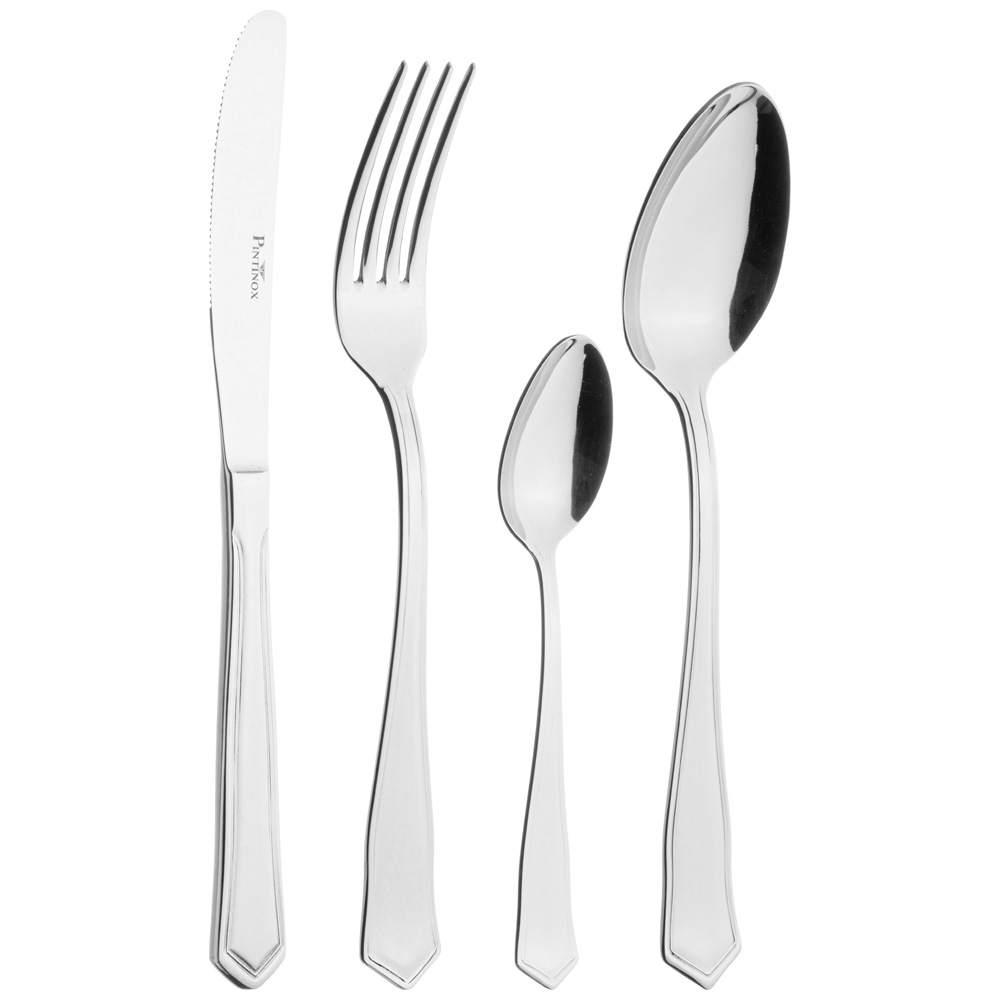Столовые приборы Pintinox изготовлены из хромо-никелевой стали 18/10 (% хром-никель) толщиной 2,5мм. Эта сталь не содержит вредных примесей и устойчива к коррозии. Столовые приборы Pintinox идеально отполированы, что позволяет сохранять длительный срок эксплуатации. Для продления срока службы ваших столовых приборов, необходимо уделить внимание уходу за ними: после использования столовые приборы обязательно надо помыть и протереть насухо. Продукция Pintinox отличается безупречностью исполнения, высоким качеством изготовления, оригинальностью и неповторимостью дизайна.