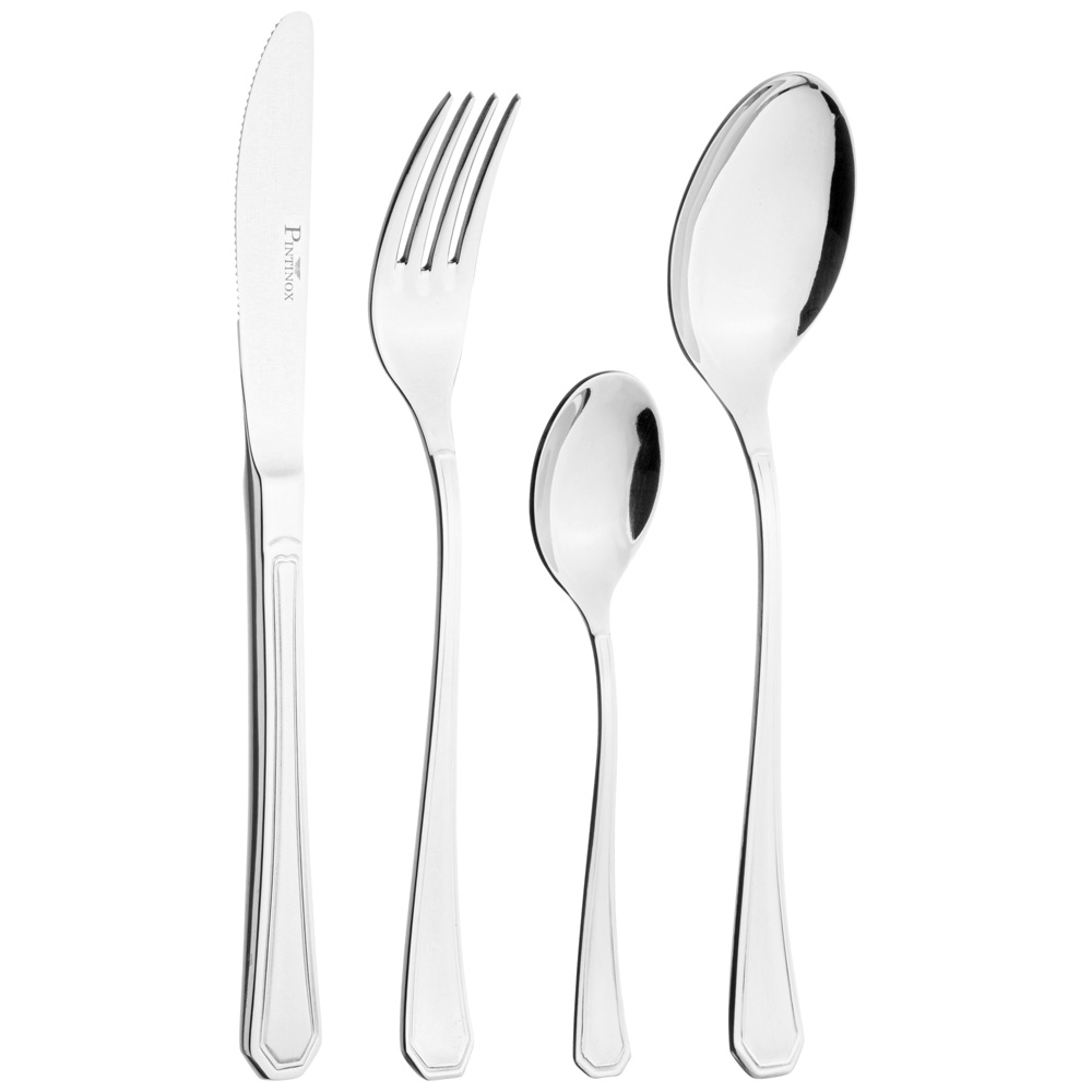 Столовые приборы Pintinox изготовлены из хромо-никелевой стали 18/10 (% хром-никель) толщиной 2,5мм. Эта сталь не содержит вредных примесей и устойчива к коррозии. Столовые приборы Pintinox идеально отполированы, что позволяет сохранять длительный срок эксплуатации. Для продления срока службы ваших столовых приборов, необходимо уделить внимание уходу за ними: после использования столовые приборы обязательно надо помыть и протереть насухо. Продукция Pintinox отличается безупречностью исполнения, высоким качеством изготовления, оригинальностью и неповторимостью дизайна.