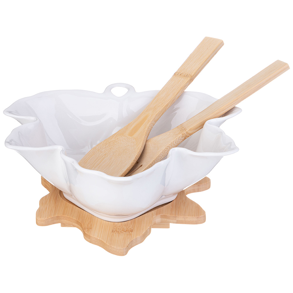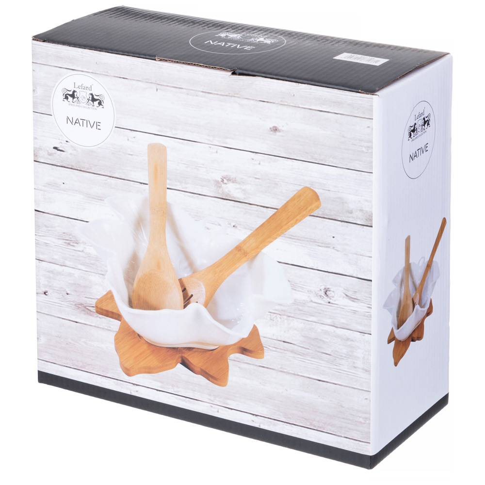 САЛАТНИК LEFARD "NATIVE" 24 СМ С ЛОЖКОЙ И ВИЛКОЙ НА ДЕРЕВ. ПОДСТАВКЕ (КОР=6ШТ.)