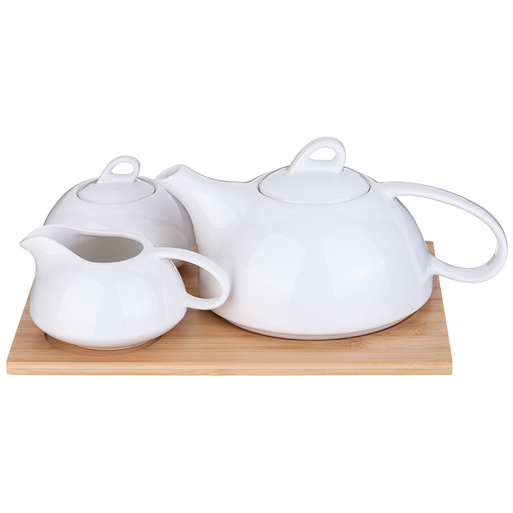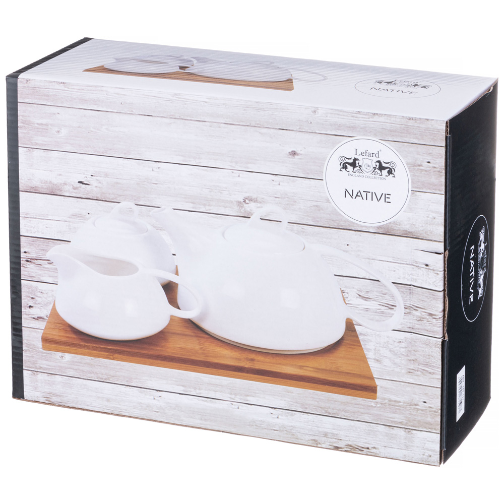НАБОР ДЛЯ ЧАЯ LEFARD "NATIVE" 3 ПР.: ЧАЙНИК, САХАРНИЦА, МОЛОЧНИК НА ДЕРЕВ. ПОДСТАВКЕ (КОР=6НАБ.)