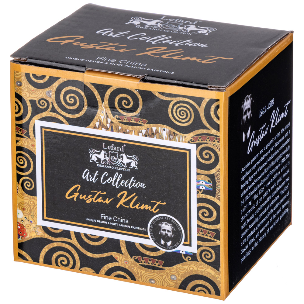 Арт Коллекция для ценителей прекрасного. Изделия из тонкостенного фарфора. Посуда прошла сертификацию. Безопасна для контакта с пищевыми продуктами. Декор по мотивам картин Густава Климта. Удобная форма. Отличный подарок. Можно использовать в микроволновой печи и мыть в посудомоечной машине.