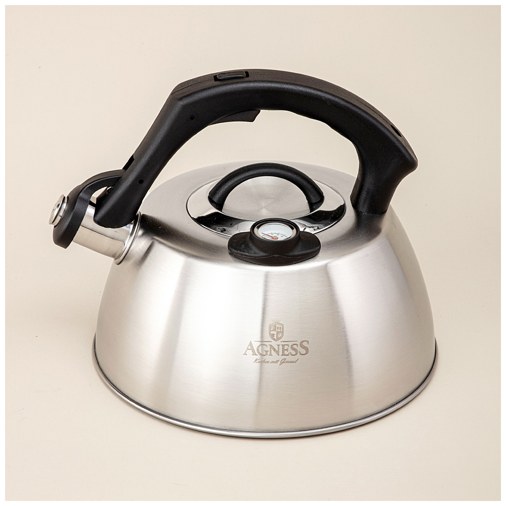 ЧАЙНИК AGNESS СО СВИСТКОМ, 2,80Л ТЕРМОАККУМУЛИРУЮЩЕЕ ДНО,ИНДУКЦИЯ,ВСТРОЕННЫЙ ТЕРМОМЕТР