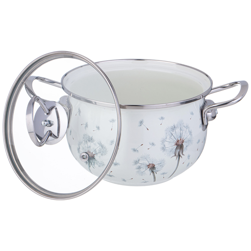 КАСТРЮЛЯ AGNESS ЭМАЛИРОВАННАЯ СО СТЕКЛЯННОЙ КРЫШКОЙ СЕРИЯ "DANDELION", 2,0 Л ДИА. 18СМ