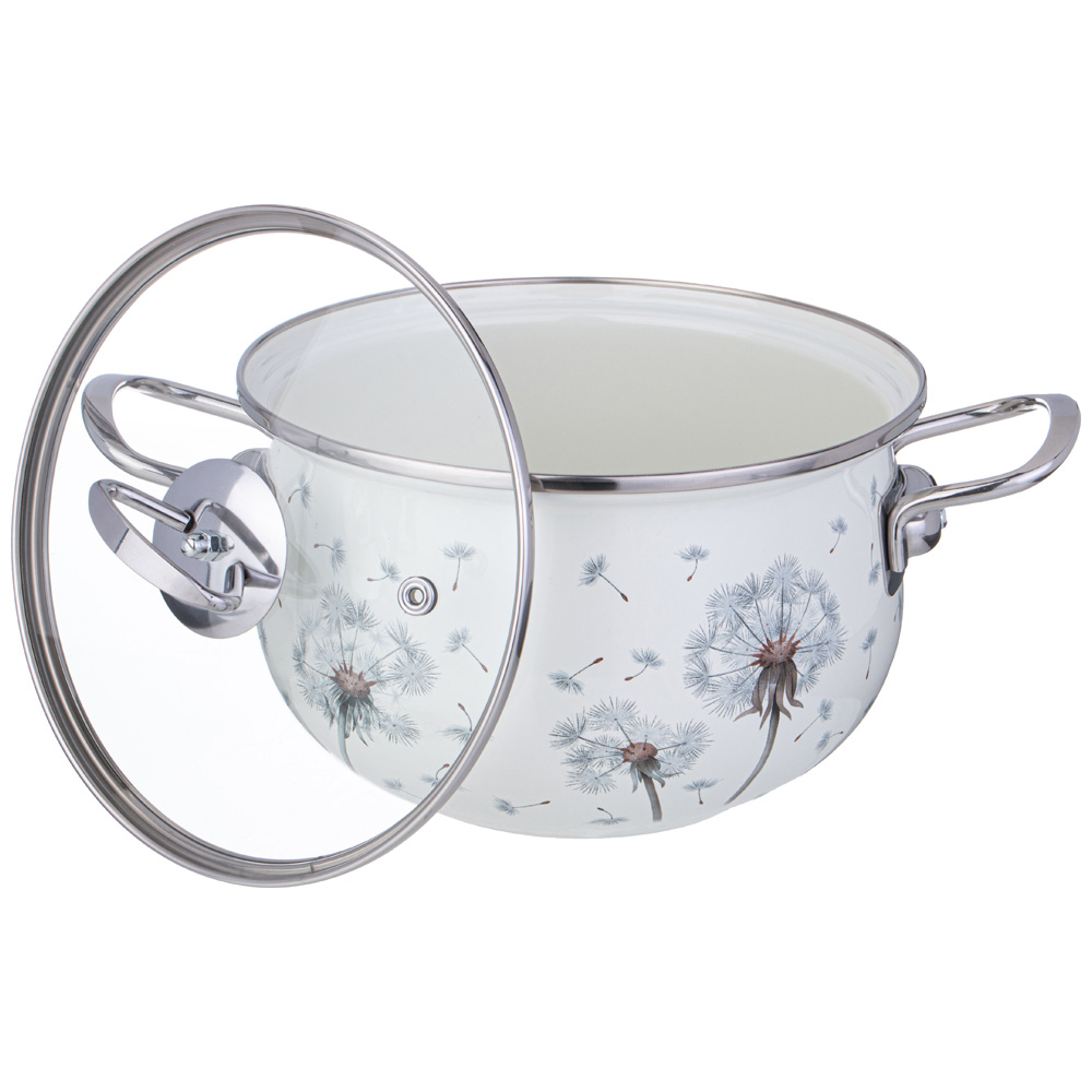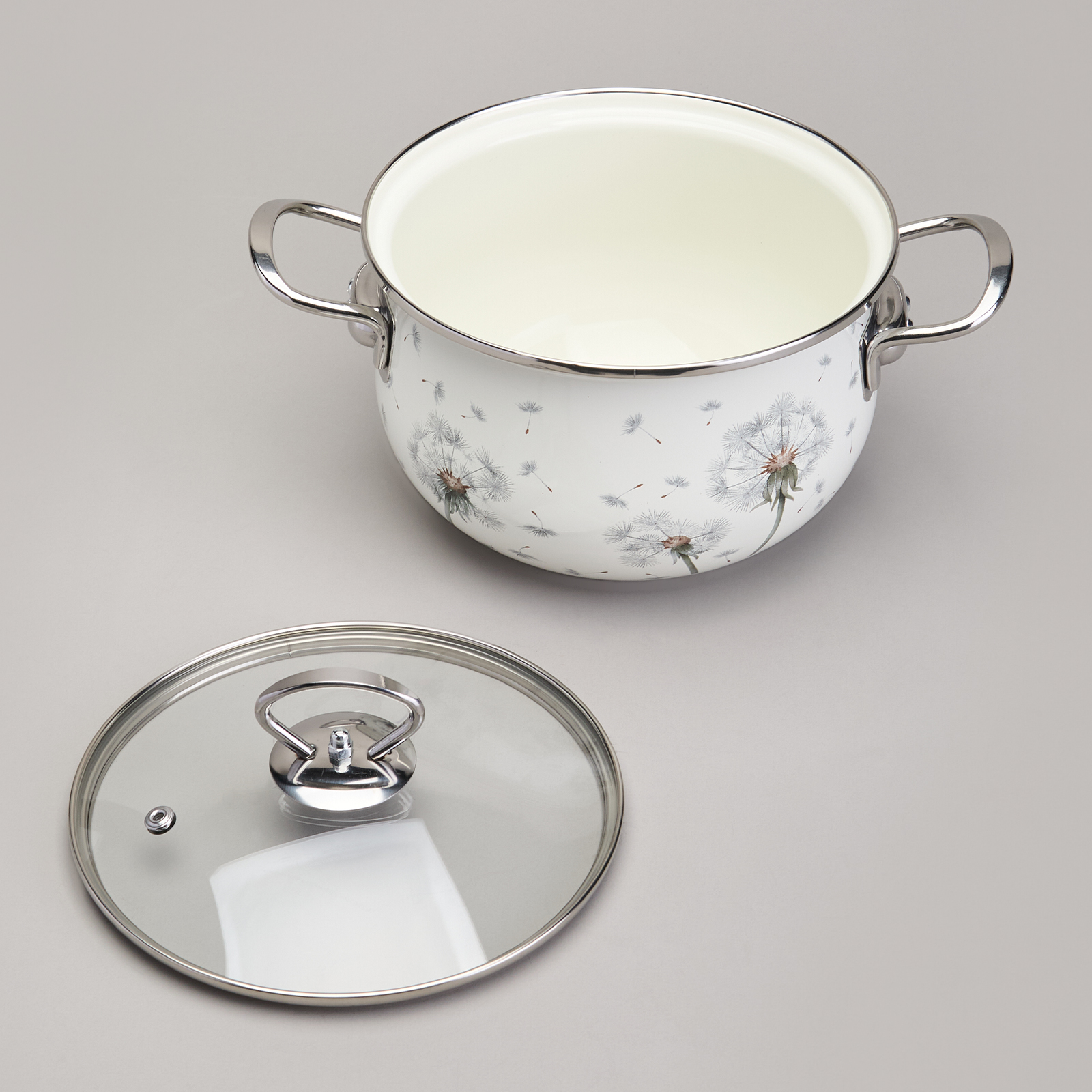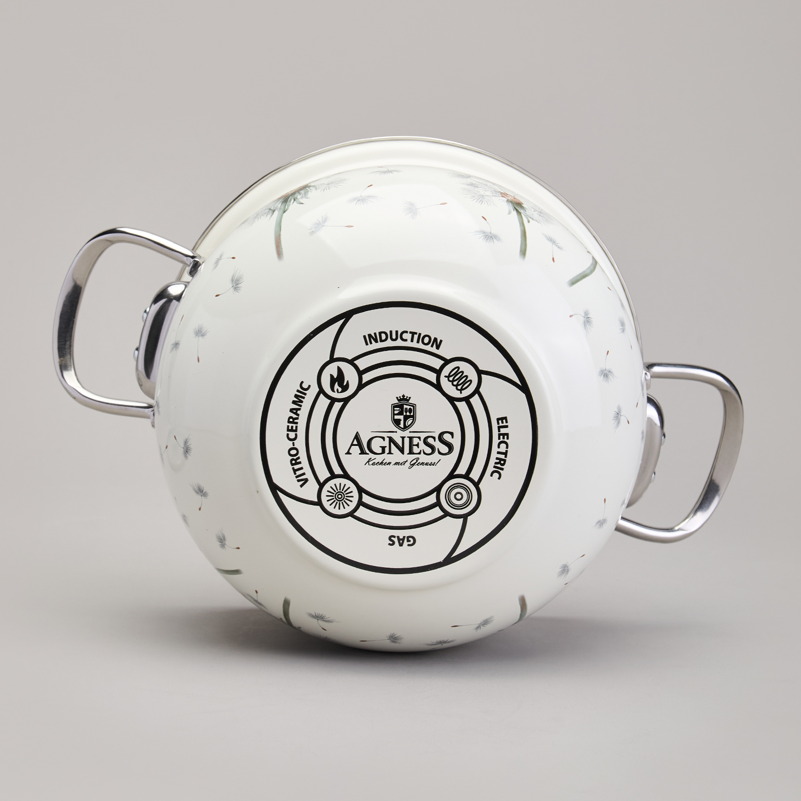 КАСТРЮЛЯ AGNESS ЭМАЛИРОВАННАЯ СО СТЕКЛЯННОЙ КРЫШКОЙ СЕРИЯ "DANDELION", 2,8 Л ДИА. 20СМ