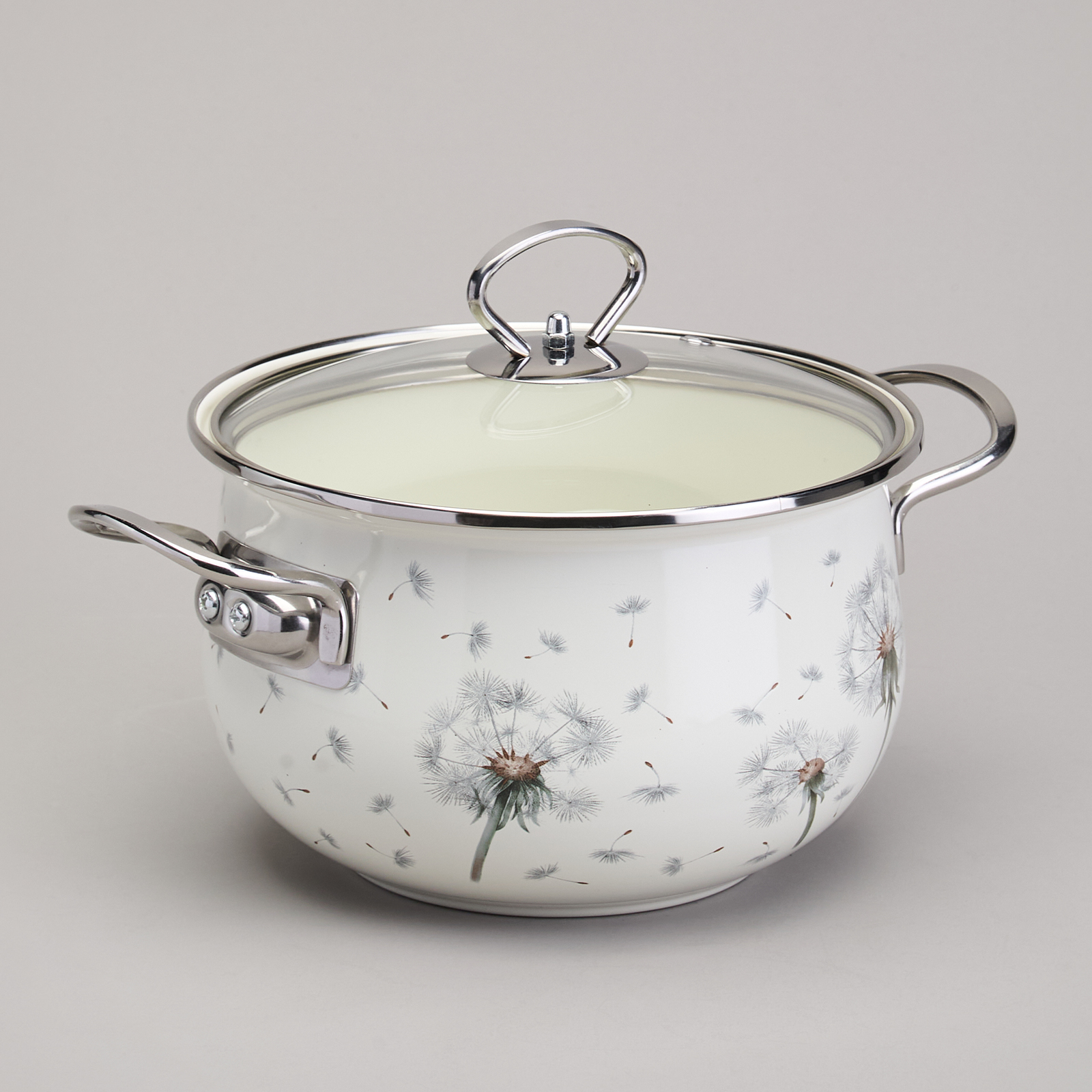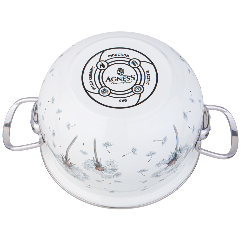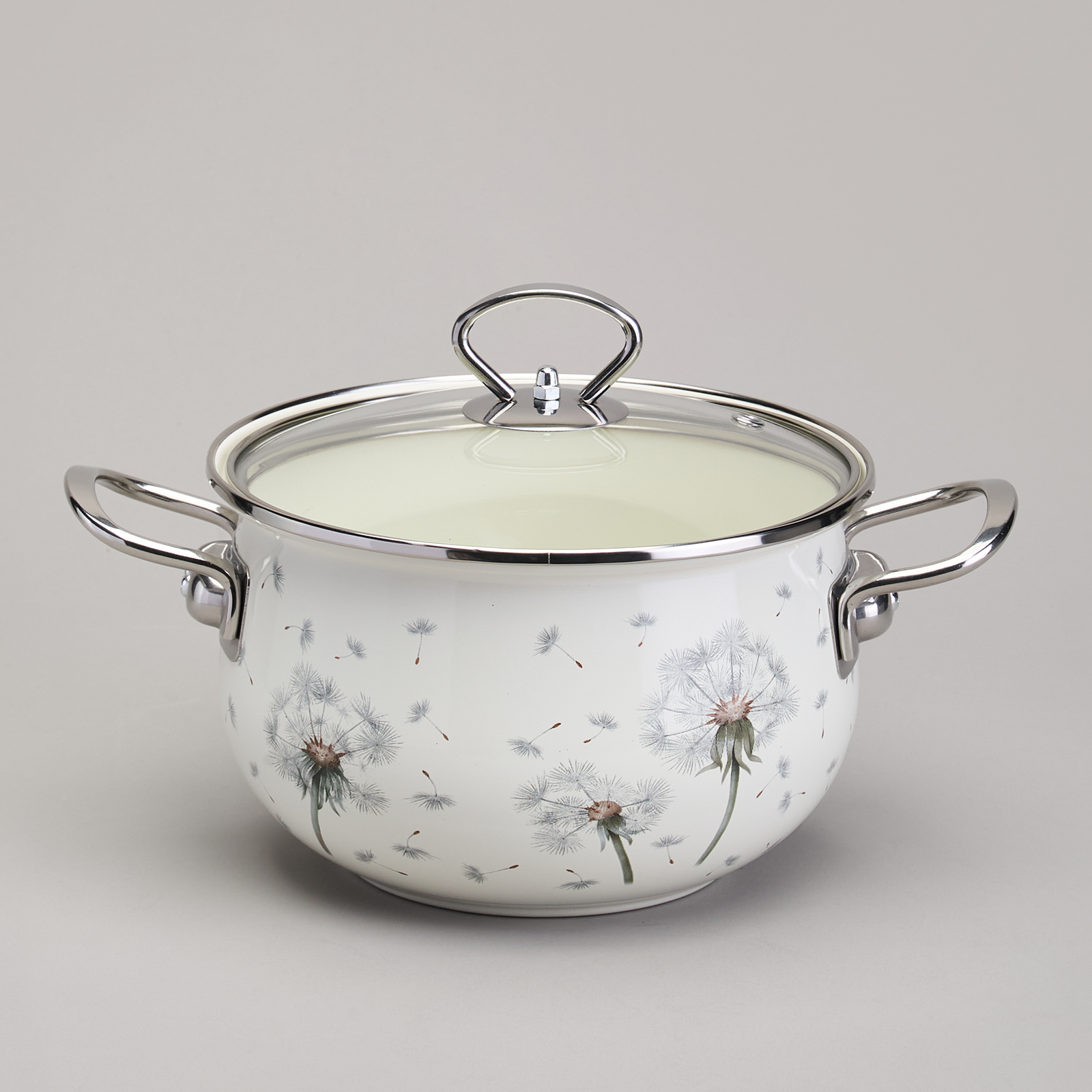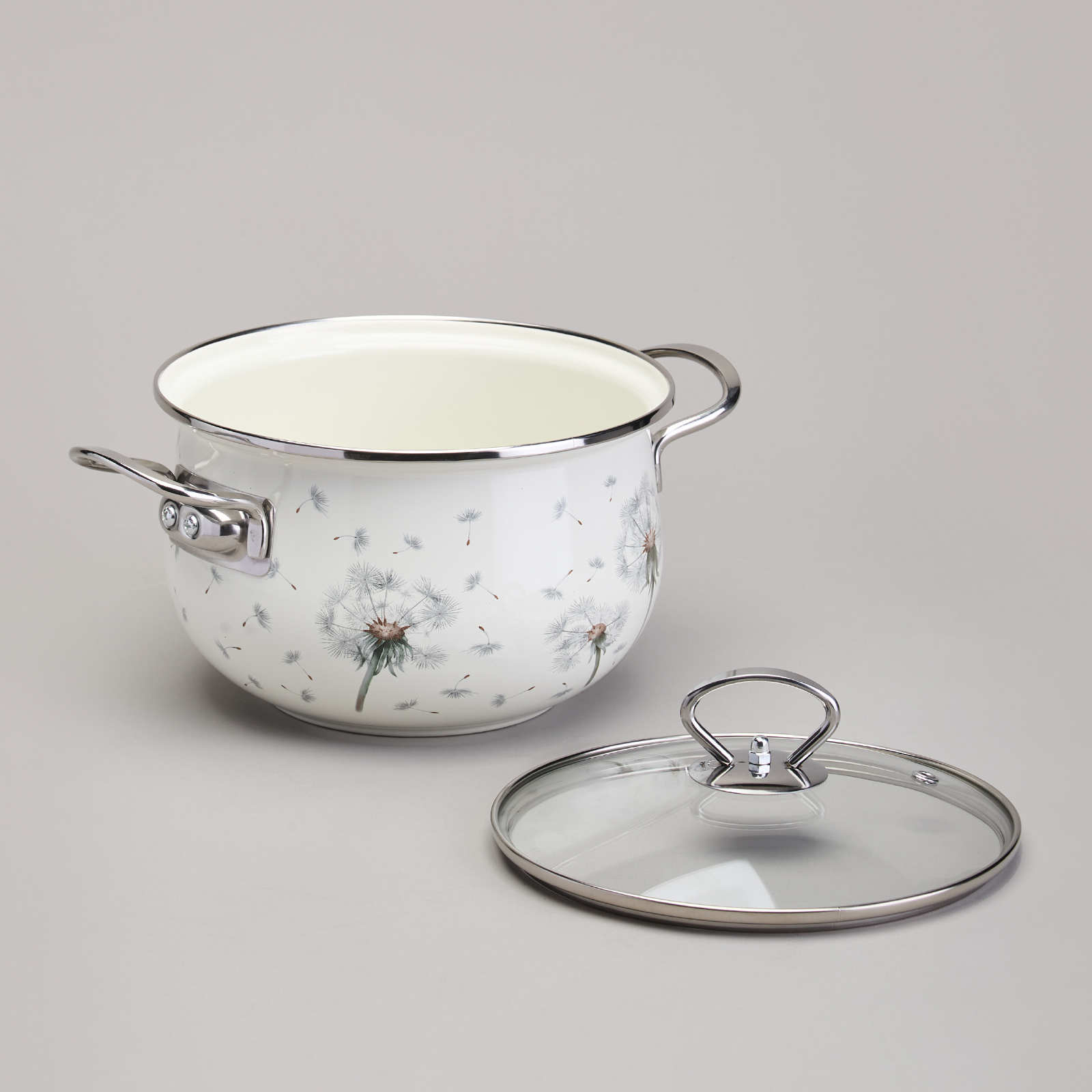 КАСТРЮЛЯ AGNESS ЭМАЛИРОВАННАЯ СО СТЕКЛЯННОЙ КРЫШКОЙ СЕРИЯ "DANDELION", 2,8 Л ДИА. 20СМ