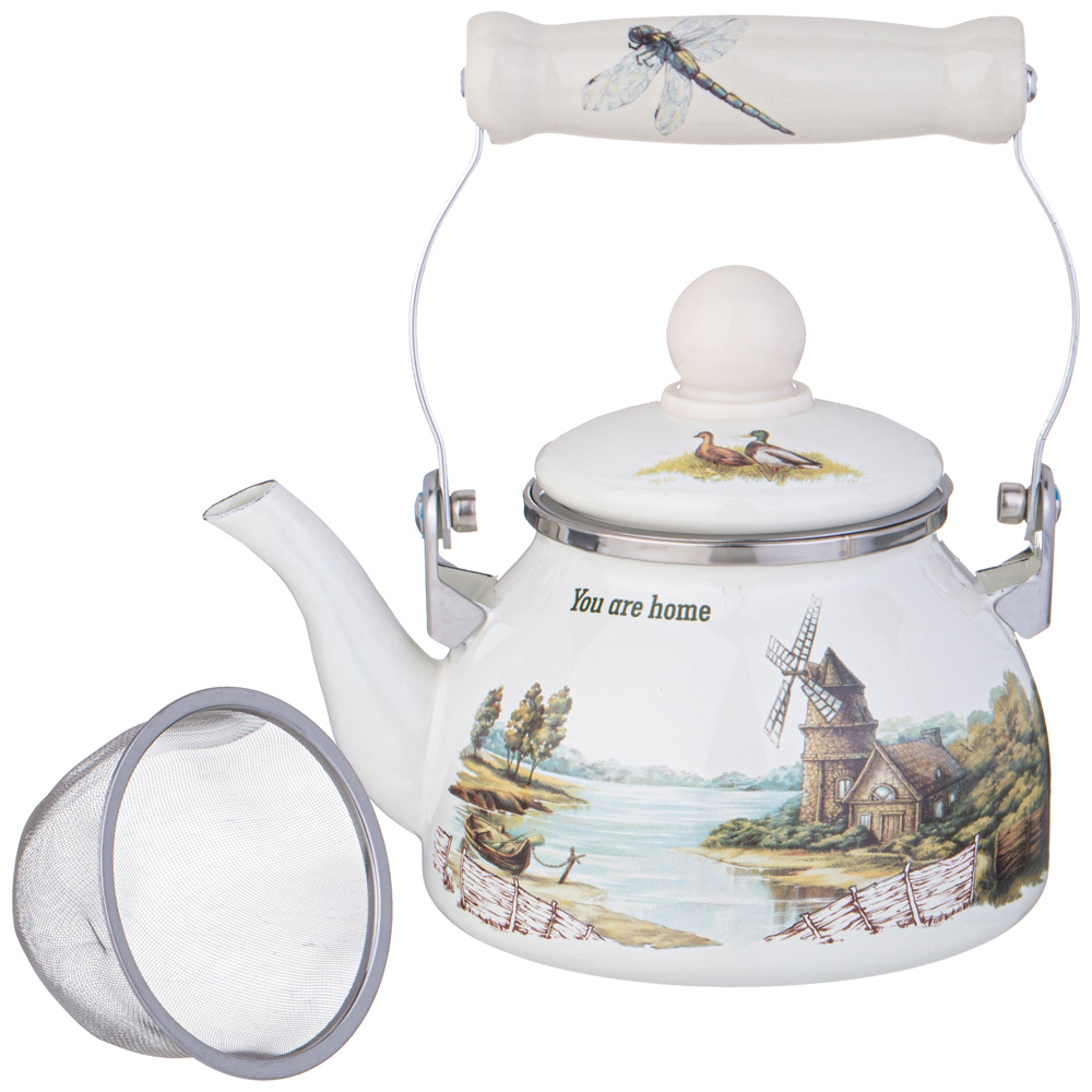 ЧАЙНИК AGNESS ЭМАЛИРОВАННЫЙ СО СЪЕМНЫМ ФИЛЬТРОМ ИЗ НЖС СЕРИЯ "FAMILY HOUSE", 0,85 Л