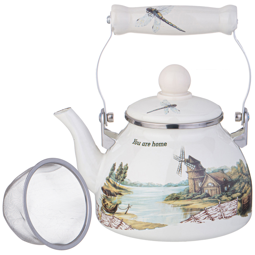 ЧАЙНИК AGNESS ЭМАЛИРОВАННЫЙ СО СЪЕМНЫМ ФИЛЬТРОМ ИЗ НЖС СЕРИЯ "FAMILY HOUSE", 1,1 Л