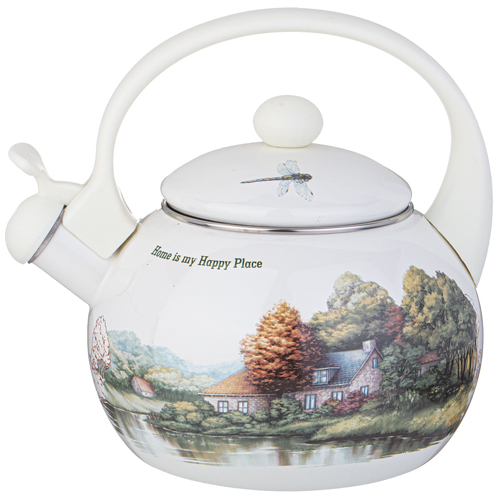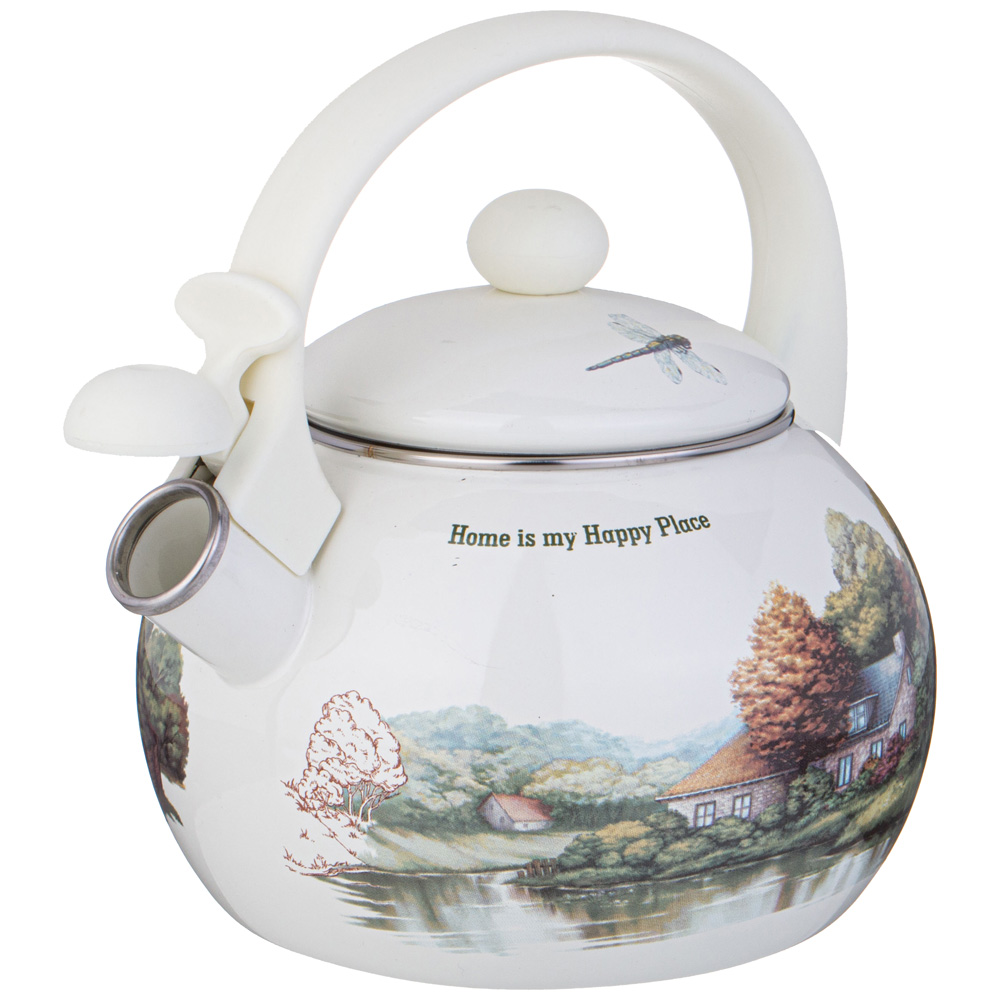 ЧАЙНИК AGNESS ЭМАЛИРОВАННЫЙ СО СВИСТКОМ СЕРИЯ "FAMILY HOUSE", 2,2 Л