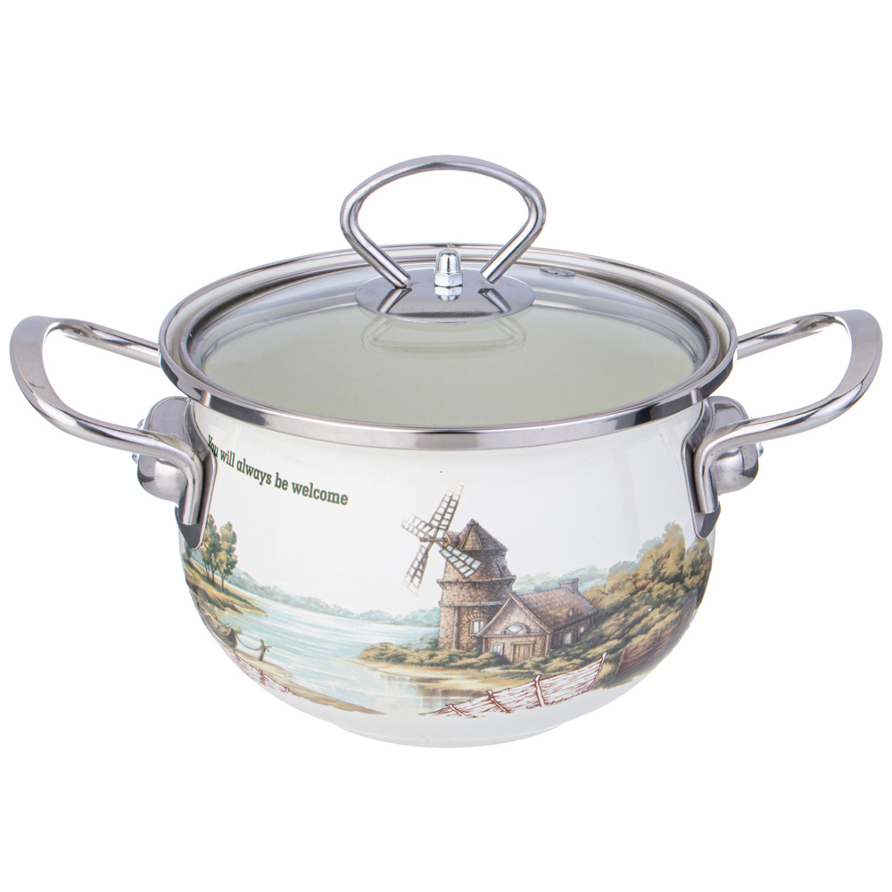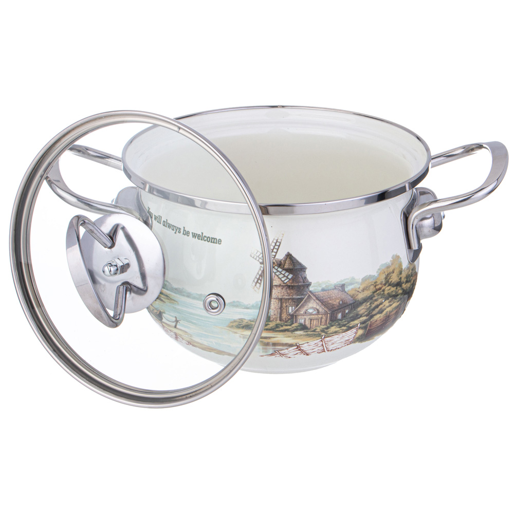 КАСТРЮЛЯ AGNESS ЭМАЛИРОВАННАЯ СО СТЕКЛЯННОЙ КРЫШКОЙ СЕРИЯ "FAMILY HOUSE", 1,5 Л ДИА.16СМ