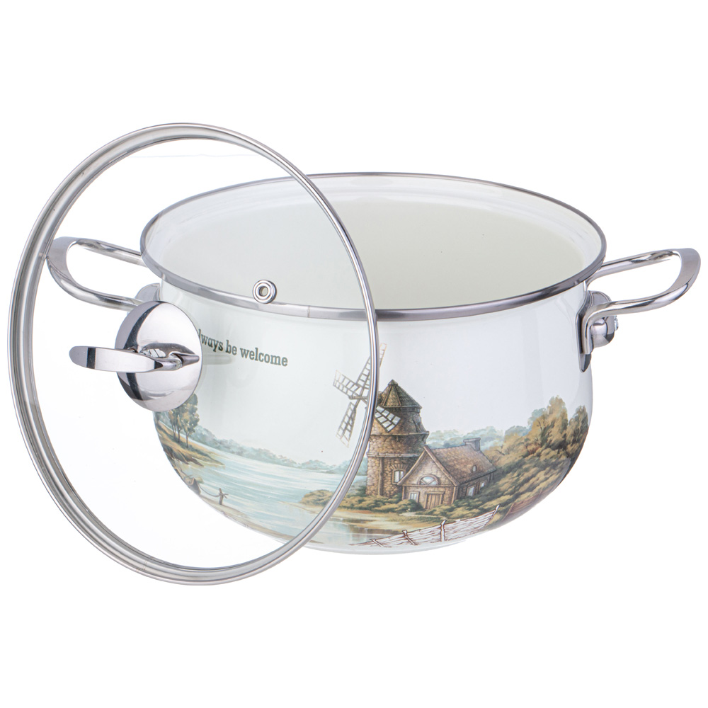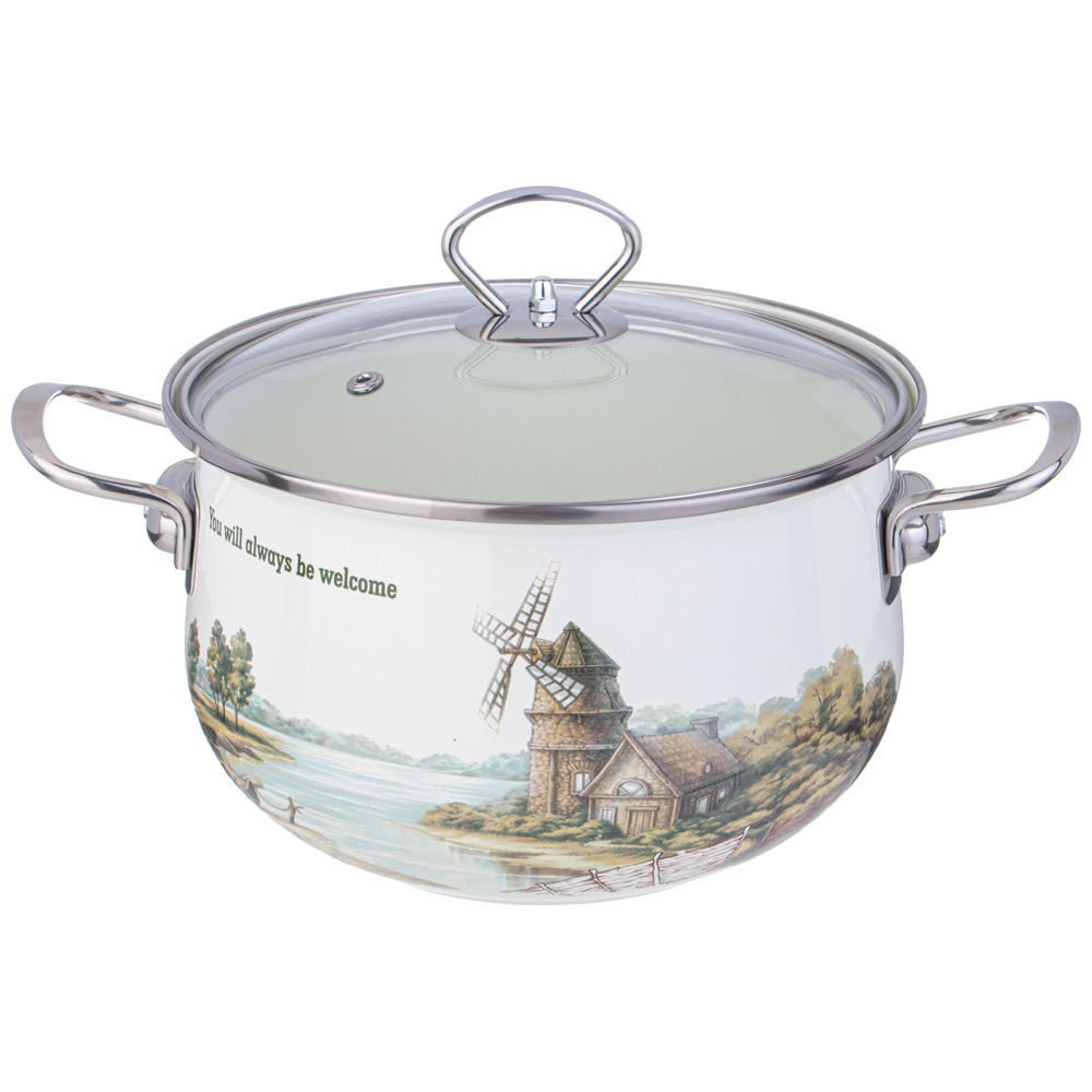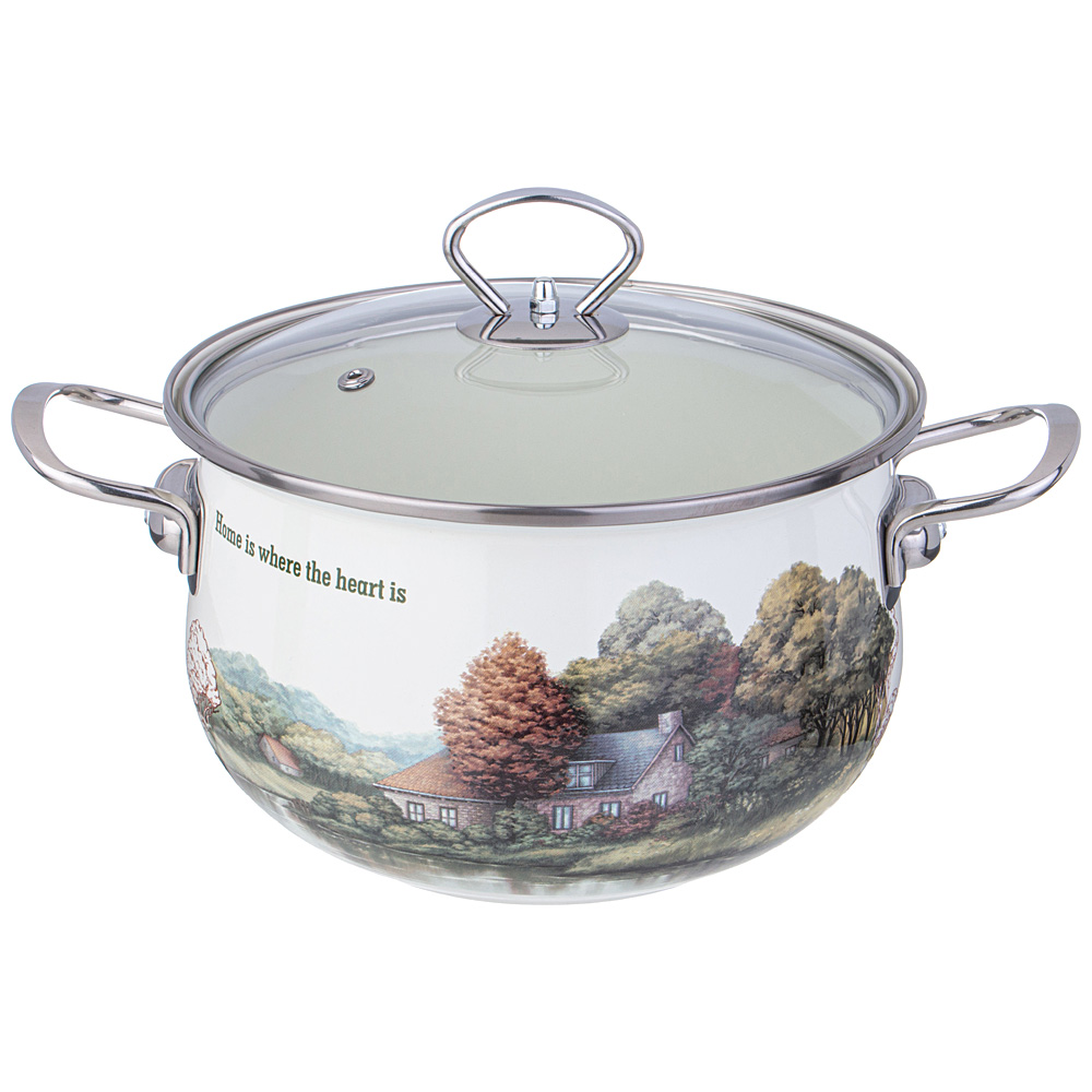 КАСТРЮЛЯ AGNESS ЭМАЛИРОВАННАЯ СО СТЕКЛЯННОЙ КРЫШКОЙ СЕРИЯ "FAMILY HOUSE", 3,8 Л ДИА. 22СМ