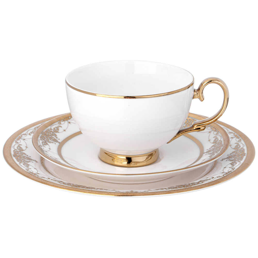 ТМ LEFARD Сервиз чайный "Дворец" для торжественного чаепития и семейных застолий. Изысканный фарфор Bone Pocelain с эффектом костяного фафора, тонкий и полупрозрачный, прочный и никогда не темнеет. Утонченный кружевной рельефный орнамент выглядит объемным и привлекательным благодаря различной обработке выпуклых и базовых поверхностей. Изящная золотая обводка придает блеск и торжественность. Эта посуда замечательный подарок на свадьбу, юбилей, день рождения, который наверняка пригодится каждой семье, запомнится навсегда и прослужит долгие годы. Дизайнеры торговой марки предлагают обеденный сервиз и наборы тарелок и чайных пар, чтобы сформировать полную сервировку стола предметами коллекции на 6 или 12 персон.