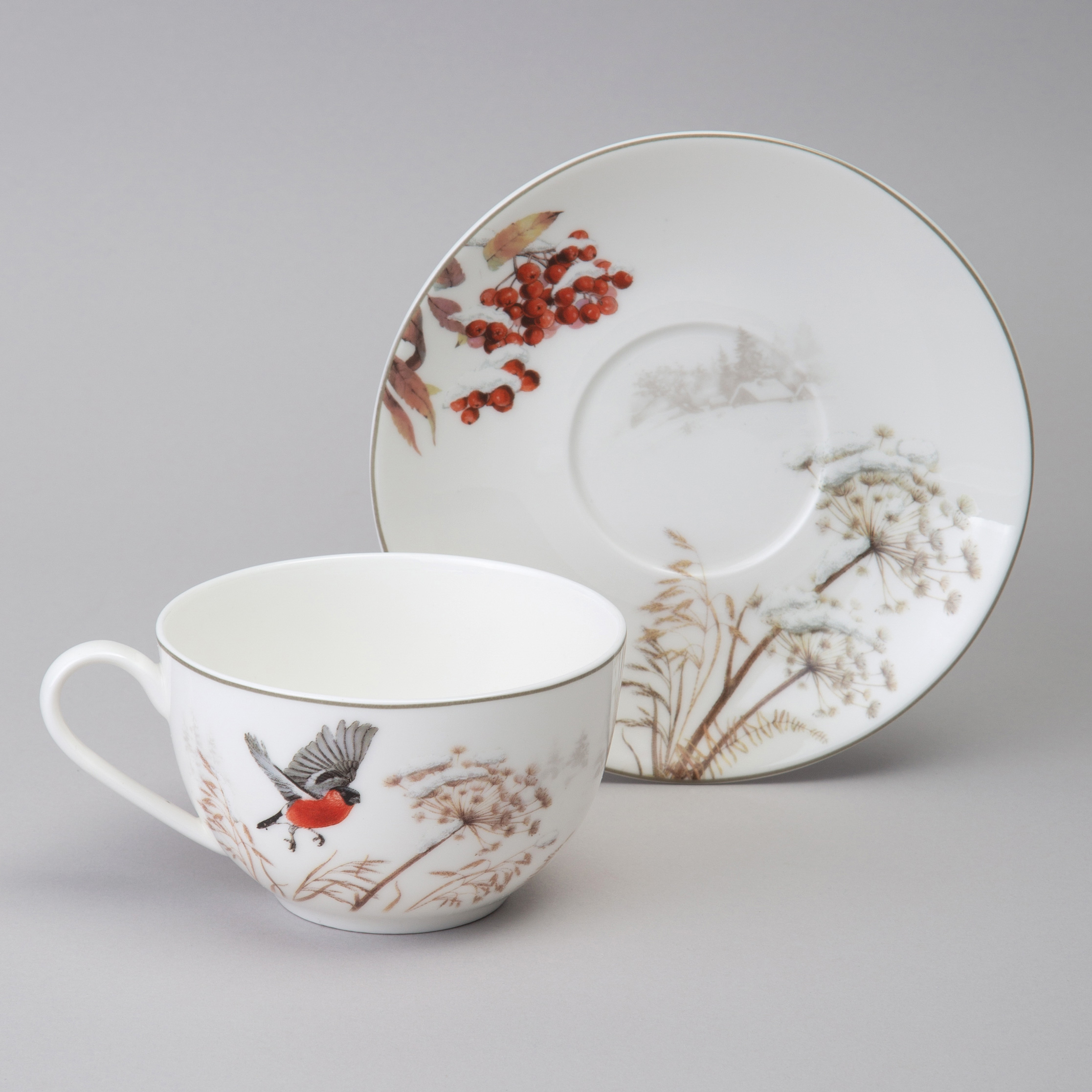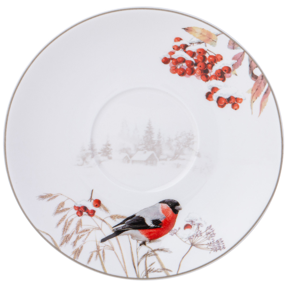 Фото снегирей очень часто украшают различные новогодние открытки, календари, журналы. Дизайнеры ТМ LEFARD разместили этих ярких птиц на белоснежном тонкостенном фарфоре.