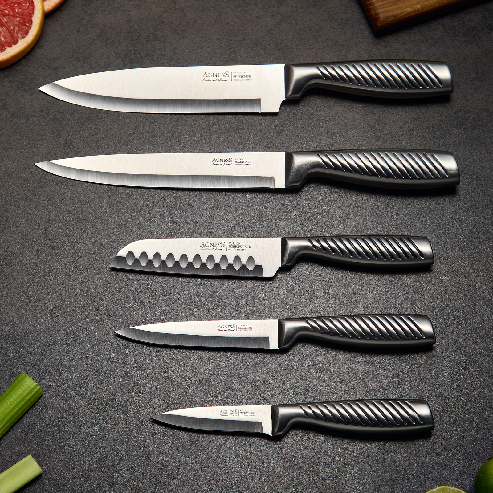 Нож - главный инструмент на кухне, а вернее ножи, т.к. даже самый лучший нож не сможет справиться со всем многообразием задач. Выбирая набор ножей AGNESS - Вы приобретаете комплект самых необходимых и чаще всего используемых ножей. Преимущества ножей AGNESS: