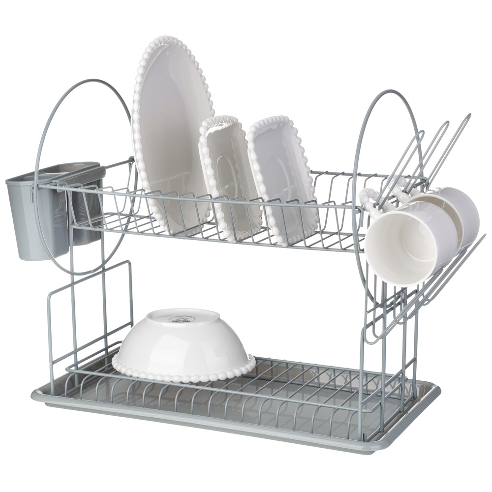 Универсальная сушилка для посуды 50*23.5*33 см – это стильный компактный аксессуар, который позволить сэкономить и упорядочить пространство на кухне. Сушилку можно поставить на полку шкафчика или использовать прямо на открытой кухонной поверхности. Имеет продуманную конструкцию, поэтому на ней можно сушить тарелки в вертикальном положении, чашки и миски. Кроме того, предусмотрены стаканы для сушки столовых приборов. Поддон для сбора воды легко вынимается и ставится обратно. Крепкое изделие из металла не боится влаги и не подвержено коррозии.