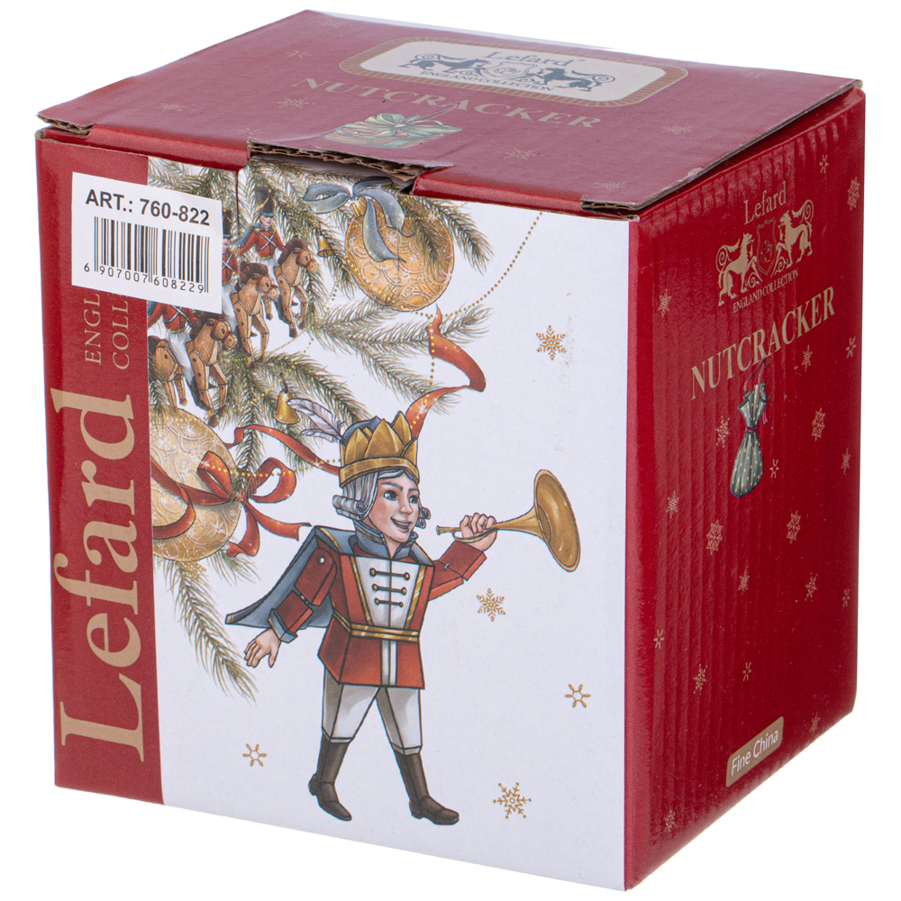 ТМ LEFARD эксклюзивная коллекция «Nutcracker» - Щелкунчик создана по мотивам одноименной истории, с которой знакомы все дети и взрослые. Волшебная история о новогоднем чуде идеально подходит для создания праздничного настроения. Широкий ассортимент тарелок, салатников, кружек, чайных пар поможет сервировать праздничный стол и создать сказочную атмосферу. Все изделия выполнены из качественного тонкого фарфора. Прямые современные формы, удобные объемы. Стильная, подарочная упаковка. Дарите сказку друзьям и близким людям! Не рекомендуется использовать в микроволновой печи, мыть в посудомоечной машине.