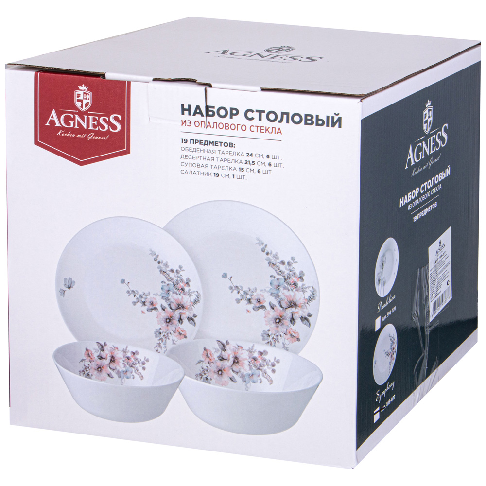 НАБОР СТОЛОВЫЙ AGNESS FLOWER SYMPHONY 19ПР: 24СМ/21,5СМ/15СМ /19СМ