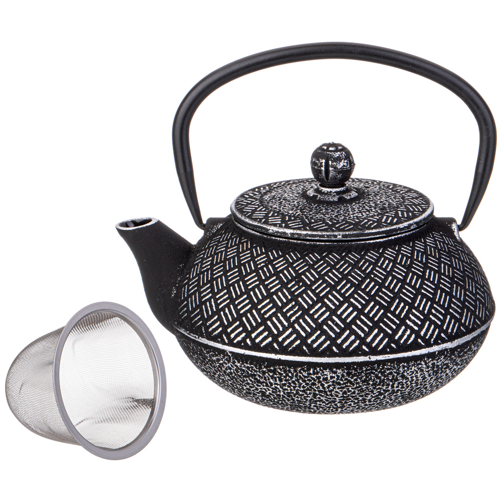 Устройте себе настоящую чайную церемонию с традиционным чугунным заварочным чайником. Внутренняя поверхность чайника покрыта эмалью, которая надежно защищает чайник от ржавчины и препятствует возникновению металлического привкуса у напитка, в связи с чем чайник идеально подойдет для заваривания Вашего любимого пуэра, улуна, черного, травяного или ароматизированного чая, раскрывая всю полноту вкуса напитка. В комплекте идет ситечко, которое надежно удерживает заварку. Не смотря на свои маленькие компактные размеры, этот чайник вмещает в себя 1000 мл, а его презентабельный внешний вид будет выигрышно смотреться на любом празднике.