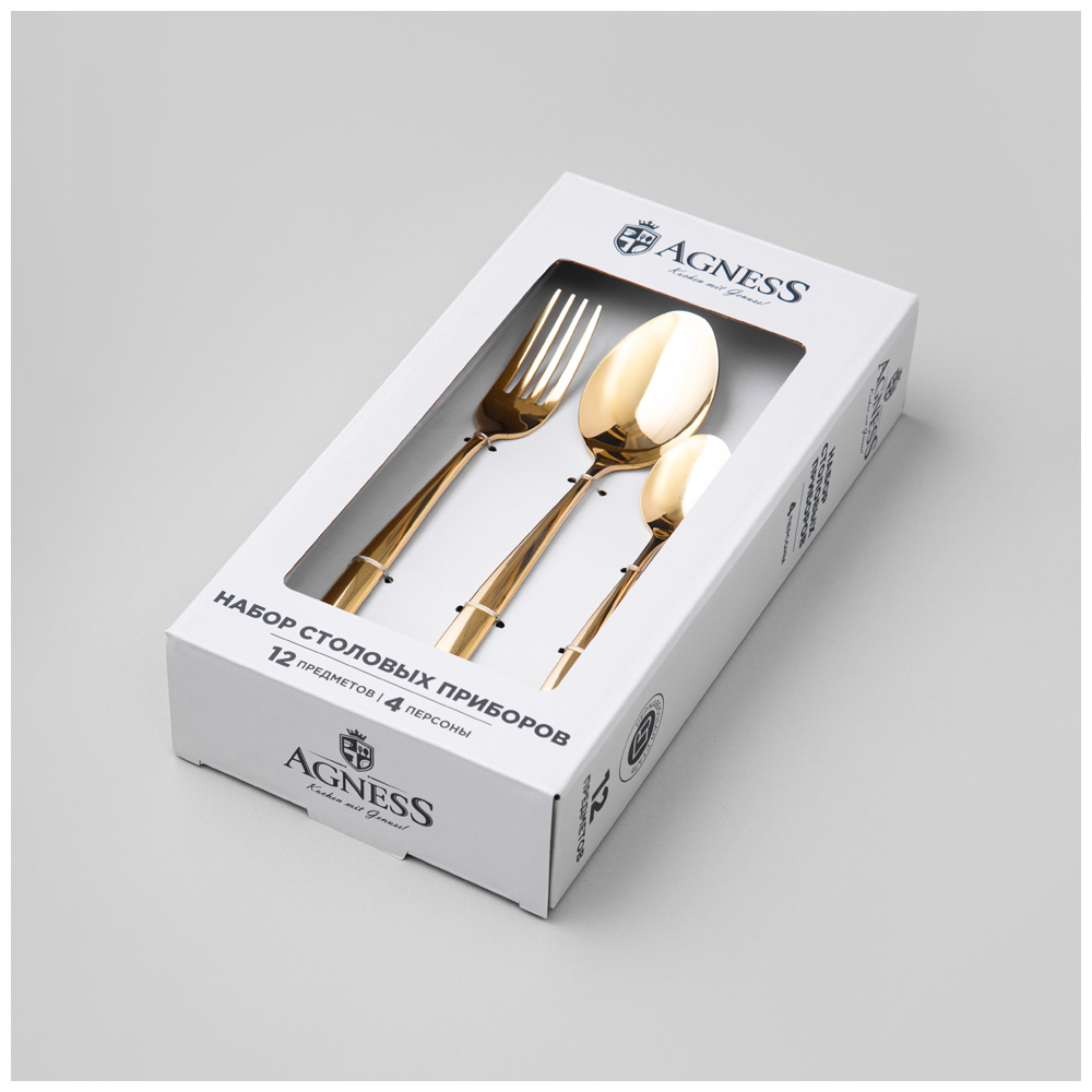НАБОР СТОЛОВЫХ ПРИБОРОВ FIORE AGNESS 12 ПР., ПВД ПОКРЫТИЕ, ЦВЕТ: ШАМПАНЬ, СТАЛЬ 18/0