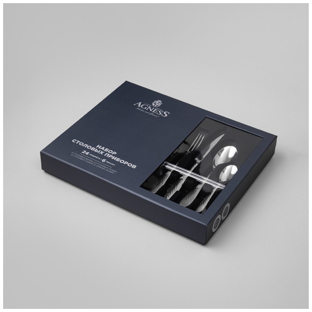 Набор столовых приборов AGNESS не только прекрасно выглядят, но и обладают отличной функциональностью. Вилки и ложки имеют комфортные ручки, которые удобно держать в руке. Каждый предмет выполнен из нержавеющей стали , что обеспечивает долговечность и устойчивость к коррозии. Набор столовых приборов является отличным выбором для кухни, где они могут быть использованы в повседневной жизни или во время особых событий и праздников. Они также подходят для ресторанов и кафе, добавляя шарма и элегантности к сервировке стола. Благодаря своей прочности и изысканному дизайну, этот набор столовых приборов станет вашим надежным и стильным спутником на многие годы.Чтобы приборы прослужили долго необходимо соблюдать ряд правил по уходу: использовать мягкие материалы, щадящие моющие эко вещества, замачивать застарелые пятна, исключая механическое воздействие. Запрещается использовать абразивные и хлоросодержащие средства. Можно мыть в посудомоечной машине. Рекомендуется ручная мойка ножей.