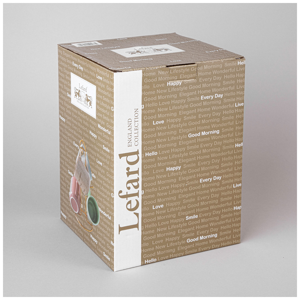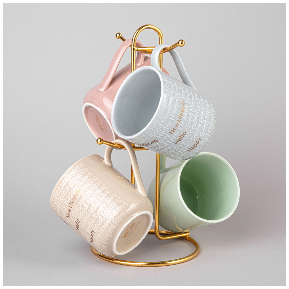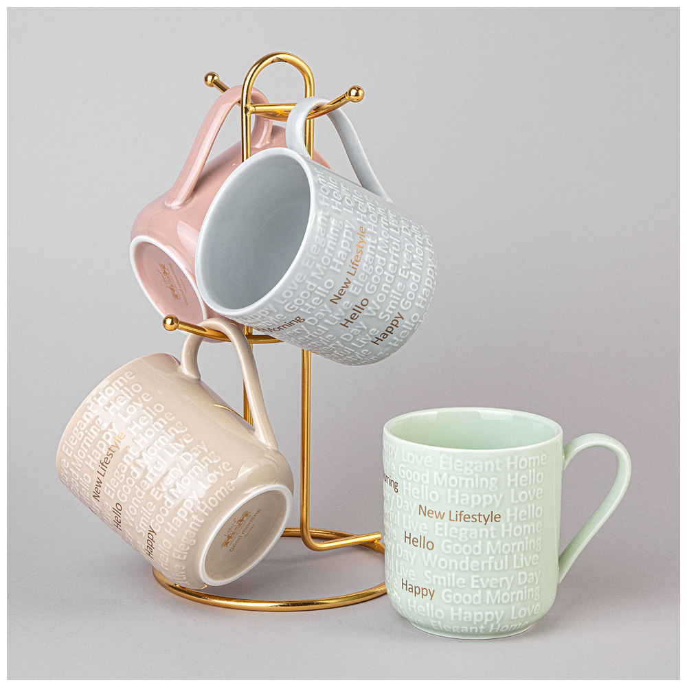 НАБОР КРУЖЕК LEFARD "GOOD MORNING" НА МЕТАЛЛ. ПОДСТАВКЕ 4 ШТ. 330 МЛ МИКС ЦВЕТОВ (КОР=4НАБ.)