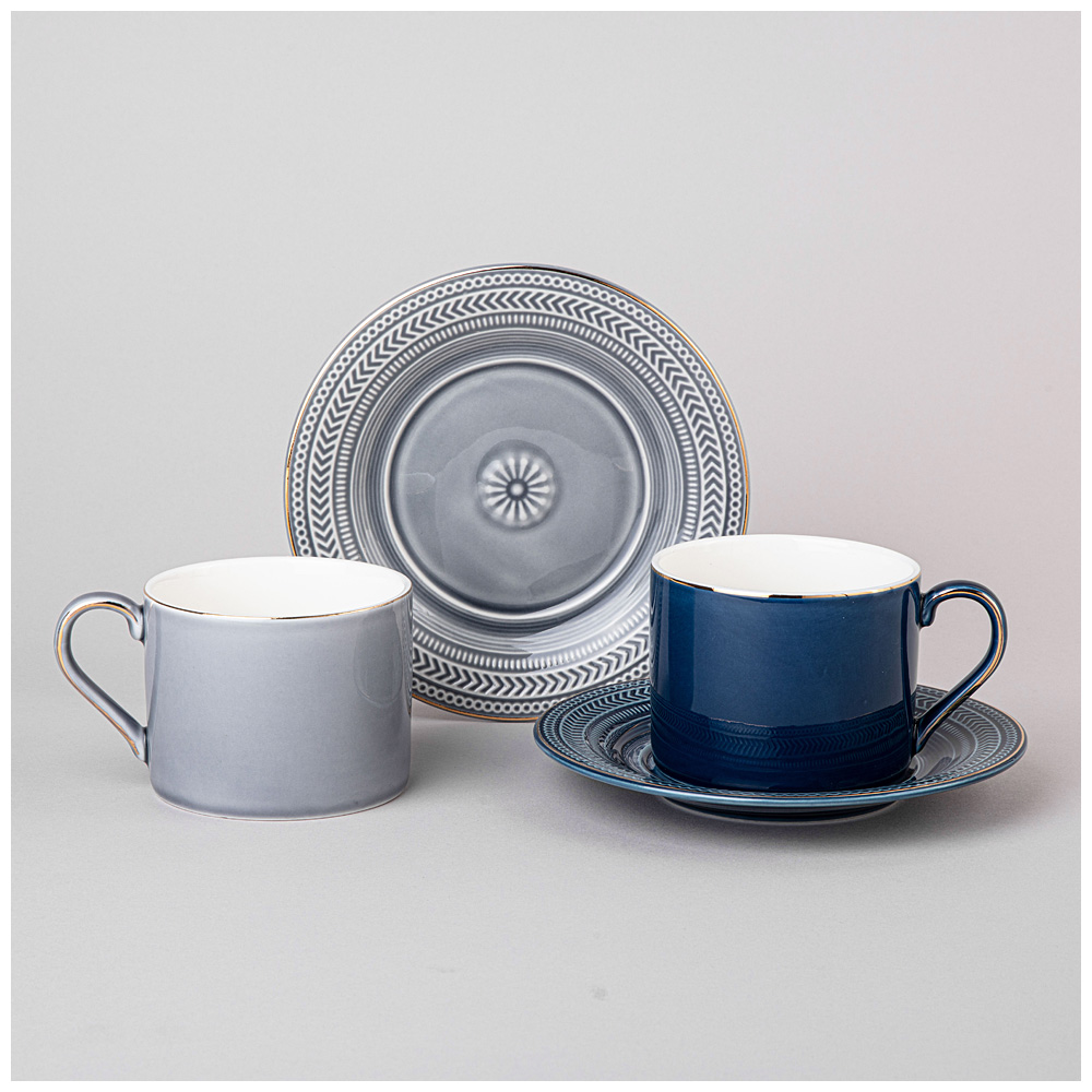 ЧАЙНЫЙ НАБОР LEFARD "TOP STYLE" НА 2 ПЕР. 4 ПР. 250 МЛ СЕРЫЙ, СИНИЙ (КОР=12НАБ.)