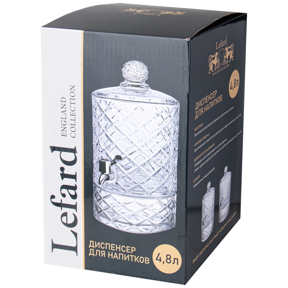 Представляем вашему вниманию наш элегантный диспенсер для напитков ТМ Lefard "DIAMANT"- идеальное сочетание функциональности и эстетики. Этот стильный аксессуар станет настоящим украшением любого стола или мероприятия. Его прозрачная емкость позволяет с легкостью демонстрировать яркие, освежающие напитки, а нижняя часть, предназначенная для свежих фруктов или льда, создает невероятный визуальный эффект и гарантирует непревзойденный вкус.