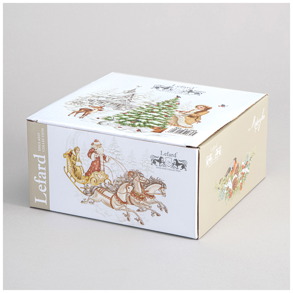 ТМ LEFARD эксклюзивная коллекция "Морозко" создана по мотивам любимой одноименной новогодней сказки, на которой выросли несколько поколений маленьких зрителей. Всем близка история доброй и красивой девушки Настеньки, которую злая мачеха отправила в лес на верную погибель. Детальные композиции, тонкие линии, высокое качество печати на тонкостенном белоснежном фарфоре превращает изделия в ожившие сюжеты. Разнообразие посуды и предметов сервировки добавят волшебства и красок в Ваш дом и порадует всех тех, кто сохранил в душе детскую радость и предвкушение чуда в самый ожидаемый праздник в году. Оригинальная упаковка. Прекрасный подарок. Вся продукция сертифицирована и безопасна для контакта с пищевыми продуктами. Можно использовать в СВЧ, не рекомендуется мыть в посудомоечных машинах во избежание повреждения золотой отводки (деколи) на изделиях.
