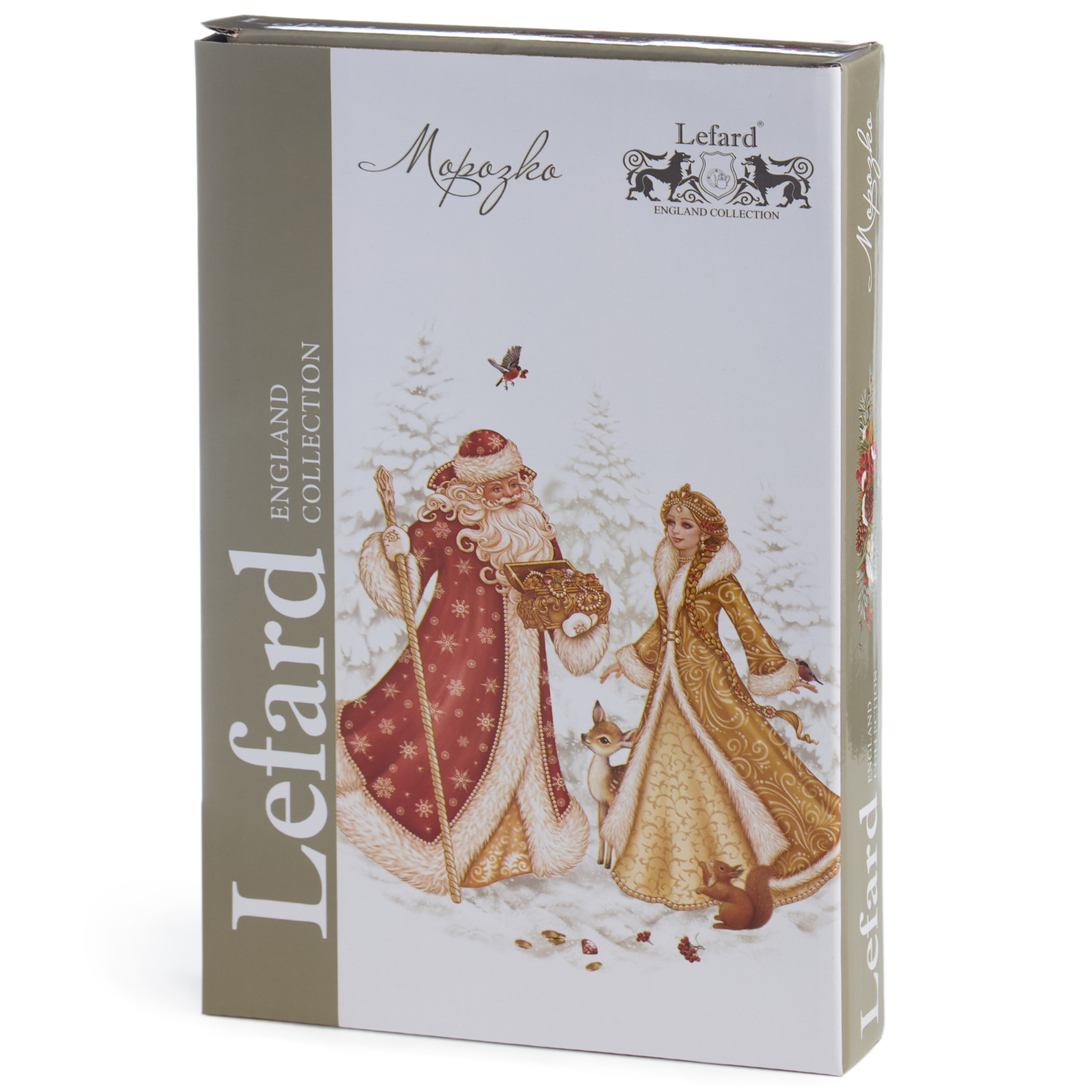 ТМ LEFARD эксклюзивная коллекция "Морозко" создана по мотивам любимой одноименной новогодней сказки, на которой выросли несколько поколений маленьких зрителей. Всем близка история доброй и красивой девушки Настеньки, которую злая мачеха отправила в лес на верную погибель. Детальные композиции, тонкие линии, высокое качество печати на тонкостенном белоснежном фарфоре превращает изделия в ожившие сюжеты. Разнообразие посуды и предметов сервировки добавят волшебства и красок в Ваш дом и порадует всех тех, кто сохранил в душе детскую радость и предвкушение чуда в самый ожидаемый праздник в году. Оригинальная упаковка. Прекрасный подарок. Вся продукция сертифицирована и безопасна для контакта с пищевыми продуктами. Можно использовать в СВЧ, не рекомендуется мыть в посудомоечных машинах во избежание повреждения золотой отводки (деколи) на изделиях.