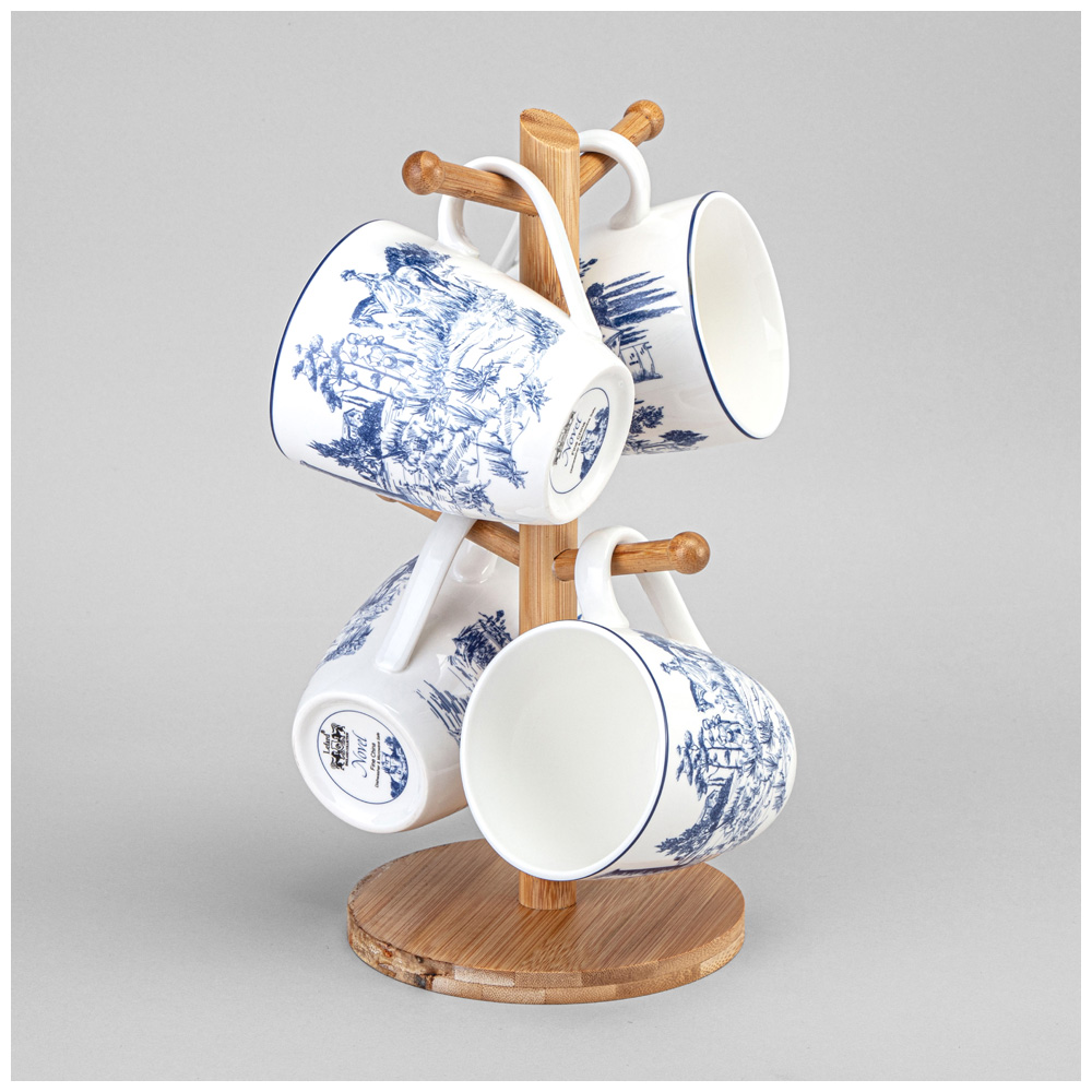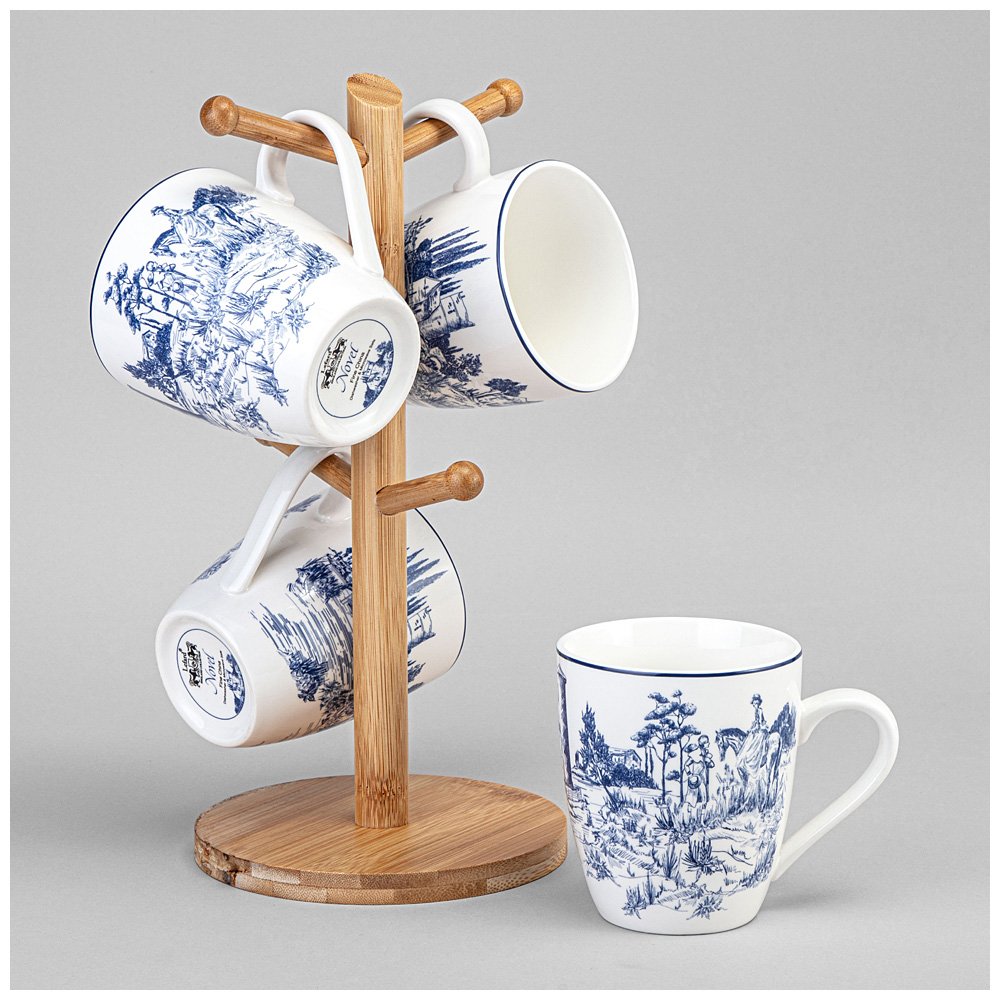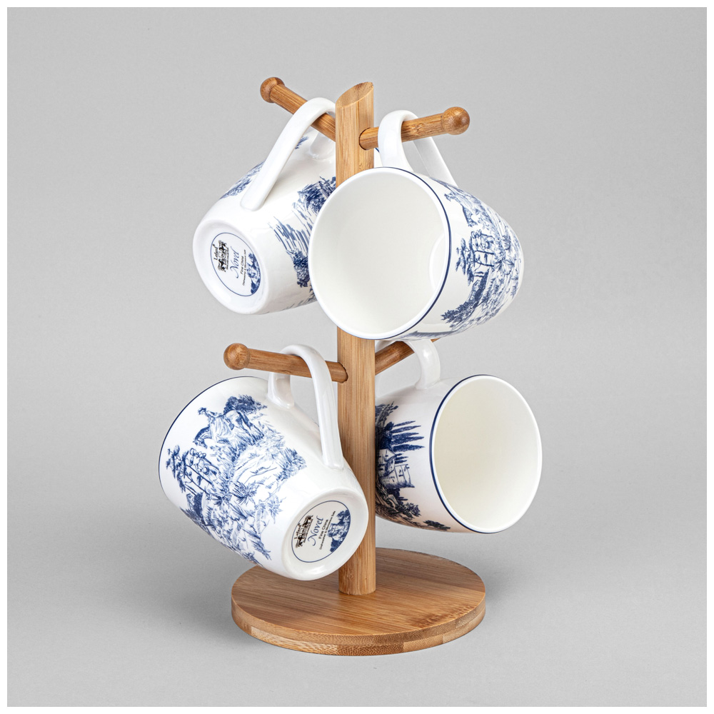 НАБОР КРУЖЕК LEFARD "NOVEL" НА ДЕРЕВ. ПОДСТАВКЕ 4 ШТ. 380 МЛ (КОР=6НАБ.)