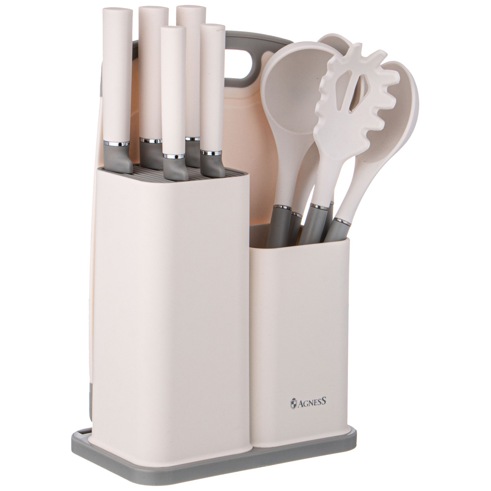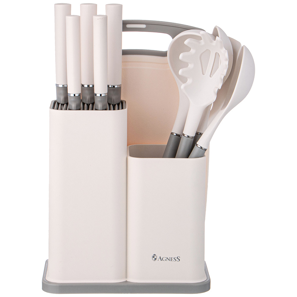 НАБОР AGNESS ИЗ 12ПР: 5 НОЖЕЙ,ДОСКА,ПОДСТАВКА,ПОЛОВНИК,ЛОЖКА,ЛОПАТКА,ШУМОВКА,ЛОЖКА ДЛЯ СПАГЕТТИ