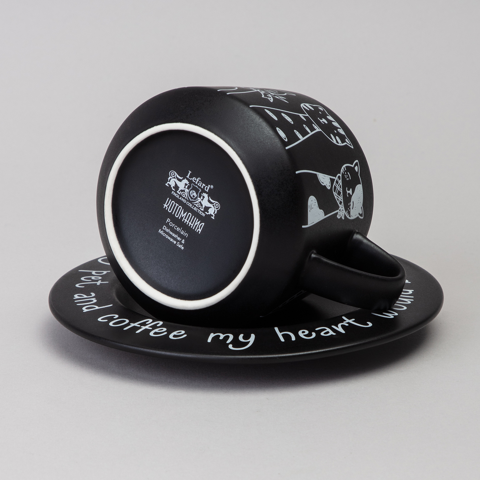 TM Lefard коллекция "КОТЫ" - отличный функциональный подарок в любой дом или офис всем любителям и ценителям чая, кофе и любимых питомцев из отряда Кошачьих. Чайная пара из качественного фарфора. Посуда прошла сертификацию. Безопасна для контакта с пищевыми продуктами. Не рекомендуется мыть в посудомоечной машине и разогревать напитки в микроволновых печах.