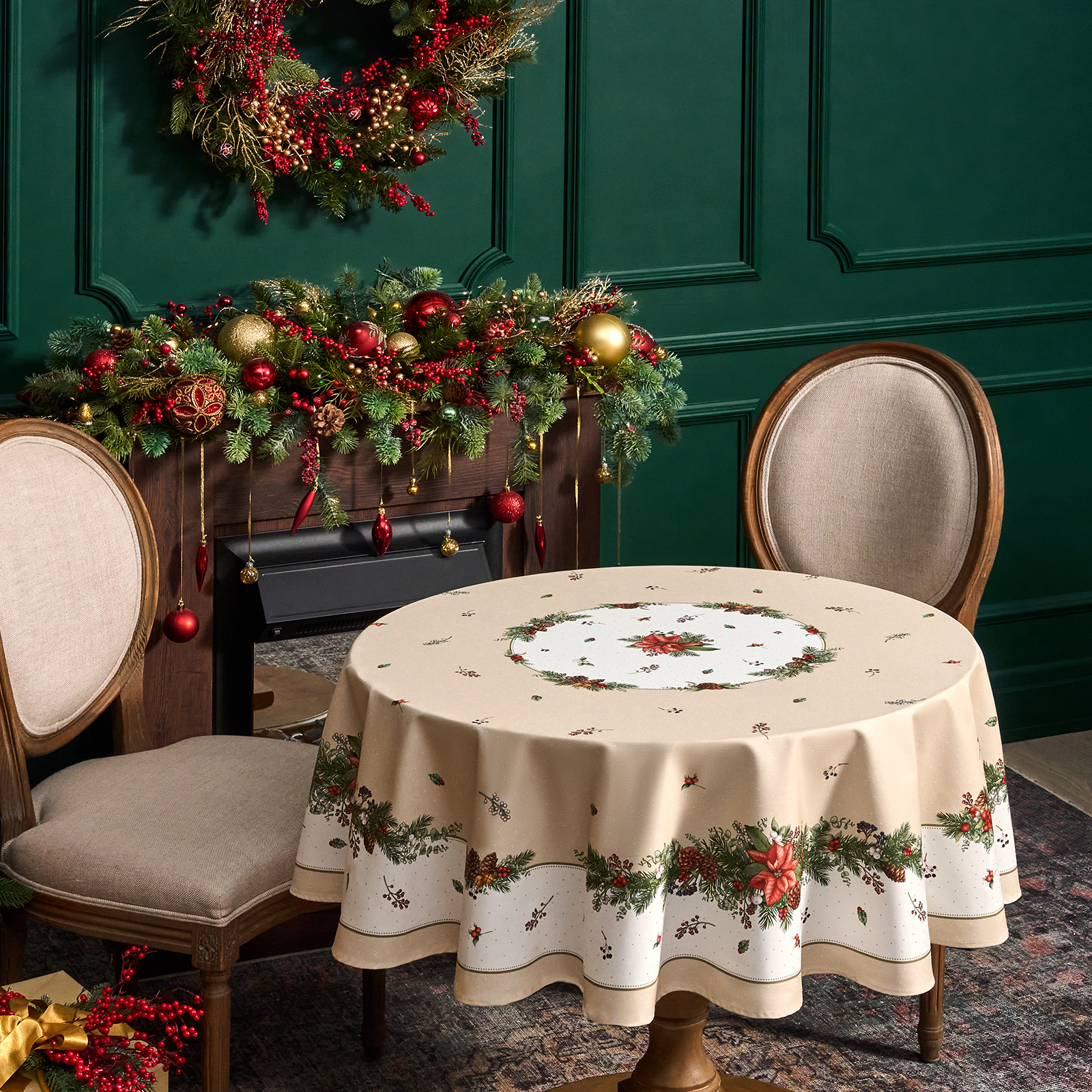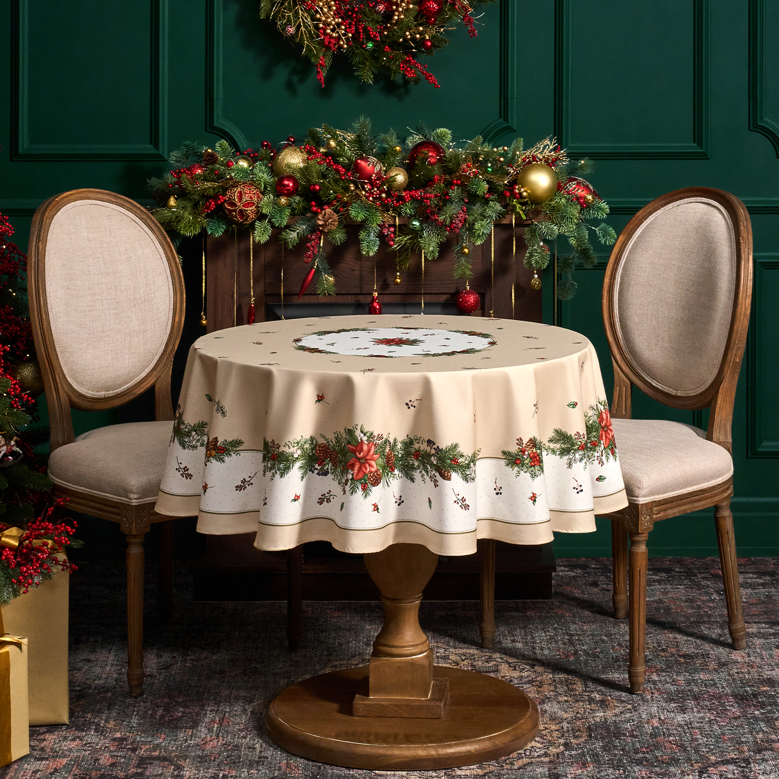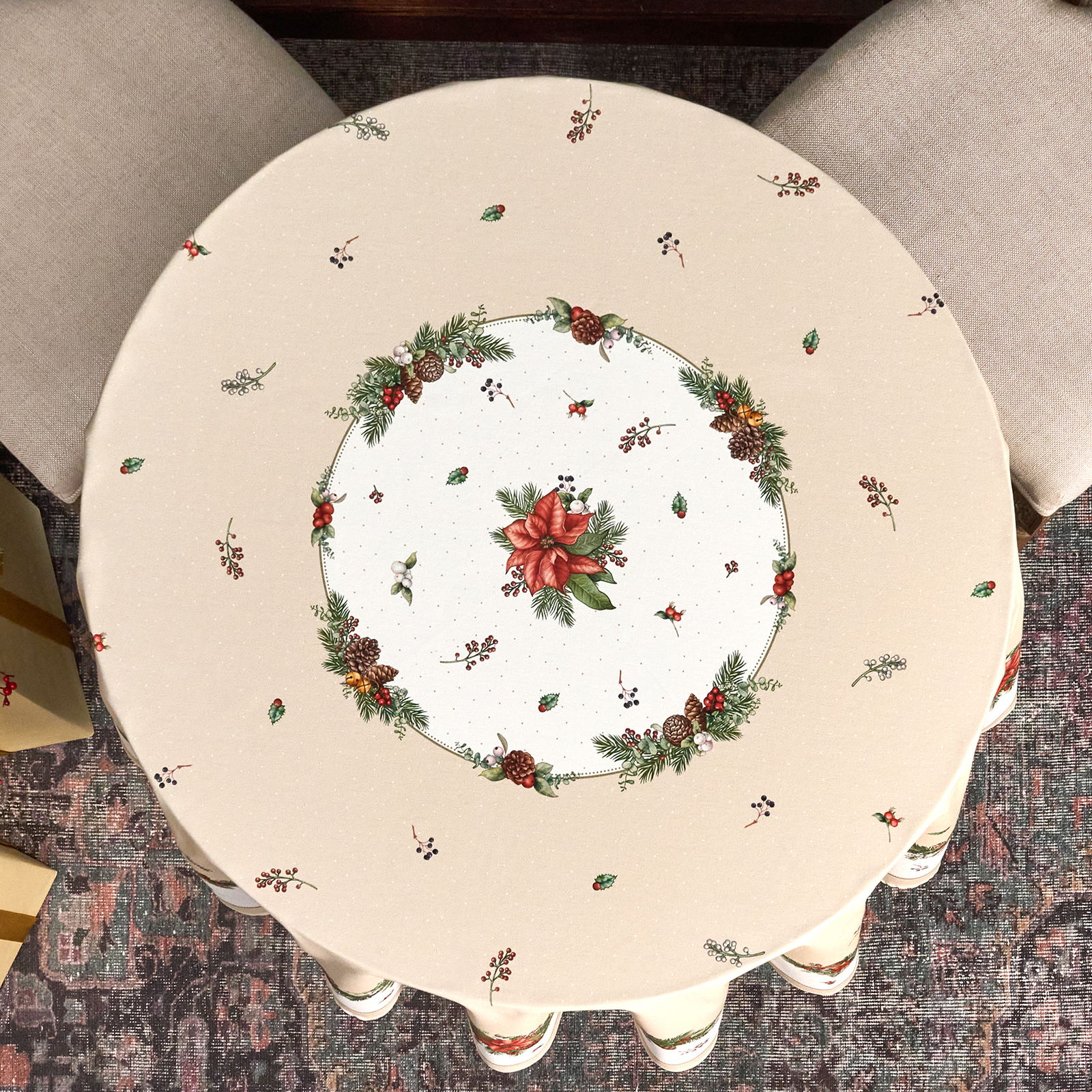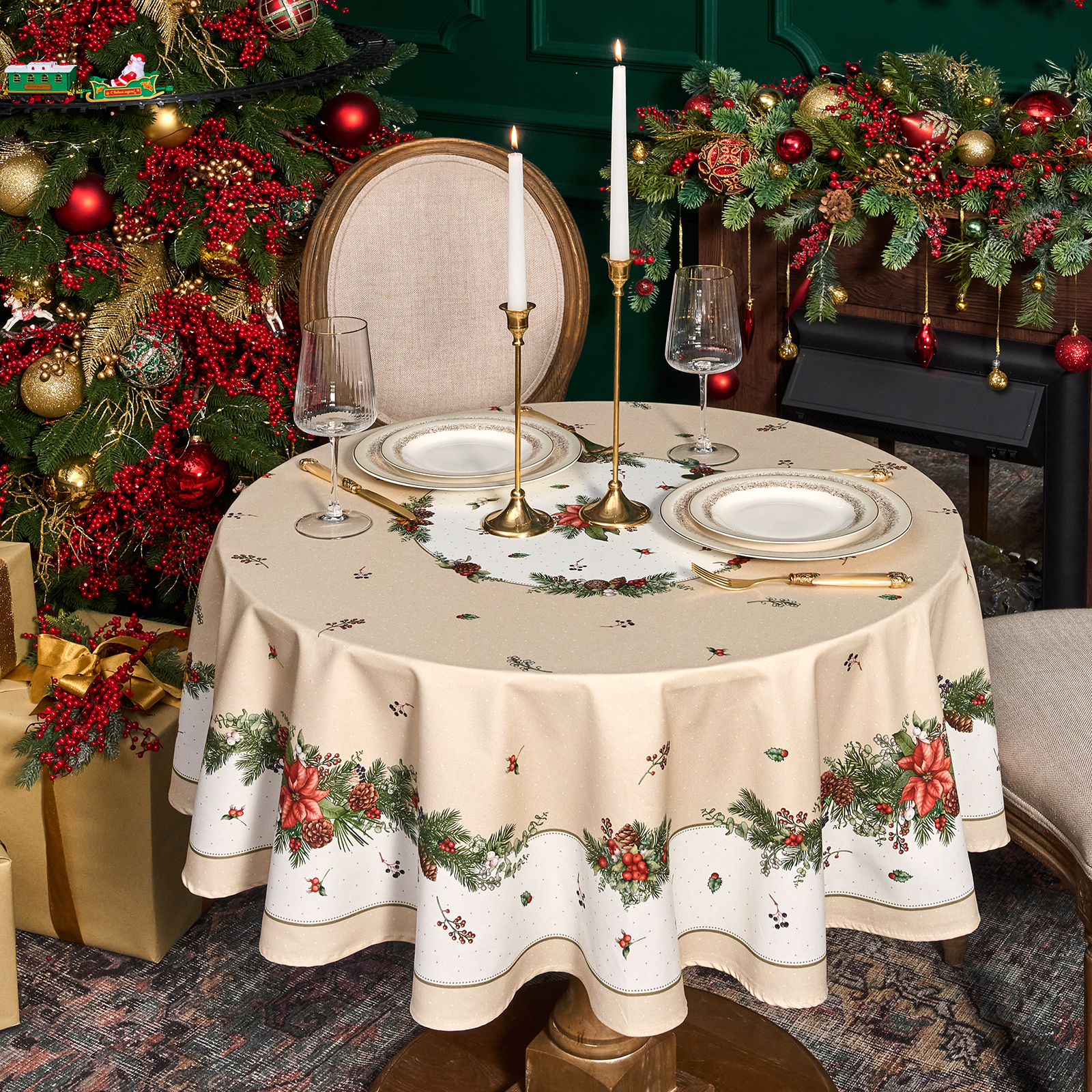 СКАТЕРТЬ КРУГЛАЯ "CELEBRATION"150 СМ ,БЕЖЕВЫЙ, 100% ХЛОПОК ,ТВИЛ ГОРОХ С ПРОПИТКОЙ