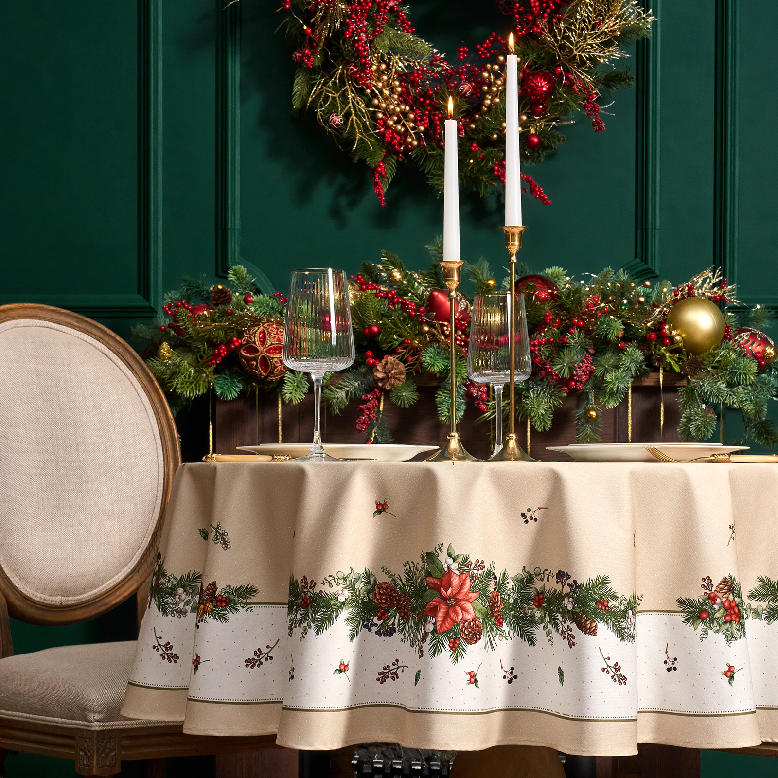 Скатерть гармонично сочетается с посудой Lefard из коллекции Celebration, создавая единый праздничный стиль на кухне или в гостиной. Используя текстиль и столовые аксессуары из одной серии, вы получите завершённый интерьерный образ — эстетичную сервировку, где каждый элемент дополняет друг друга.