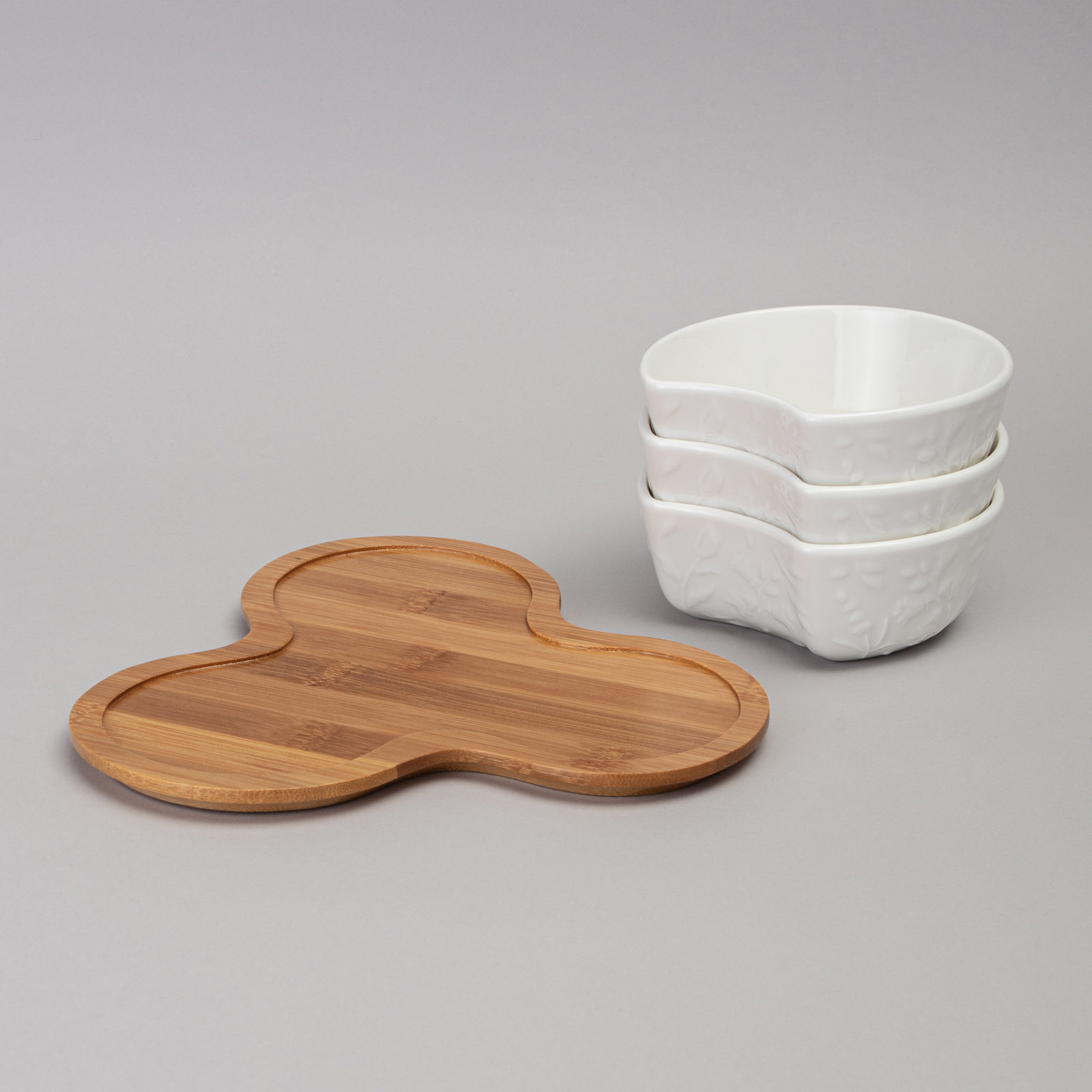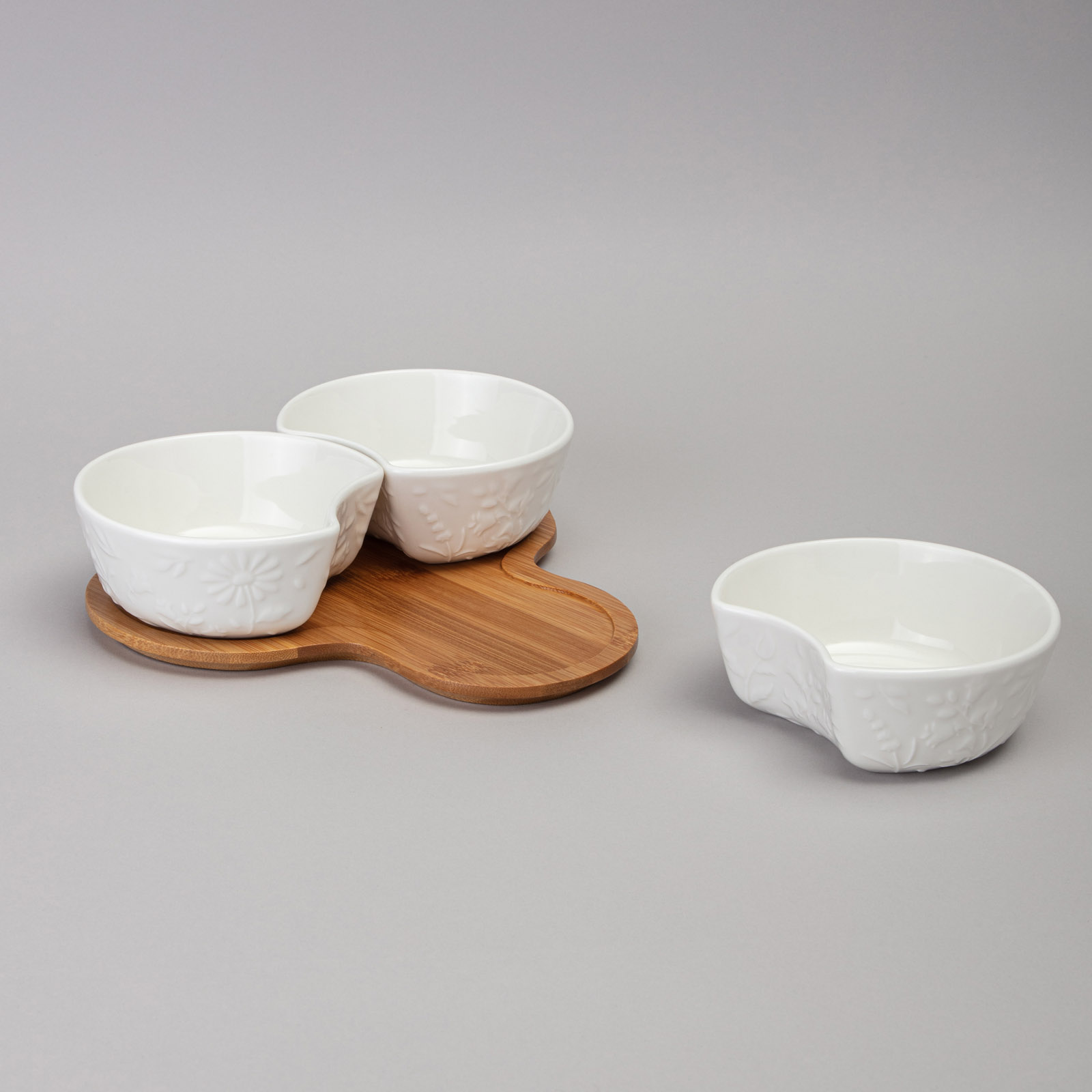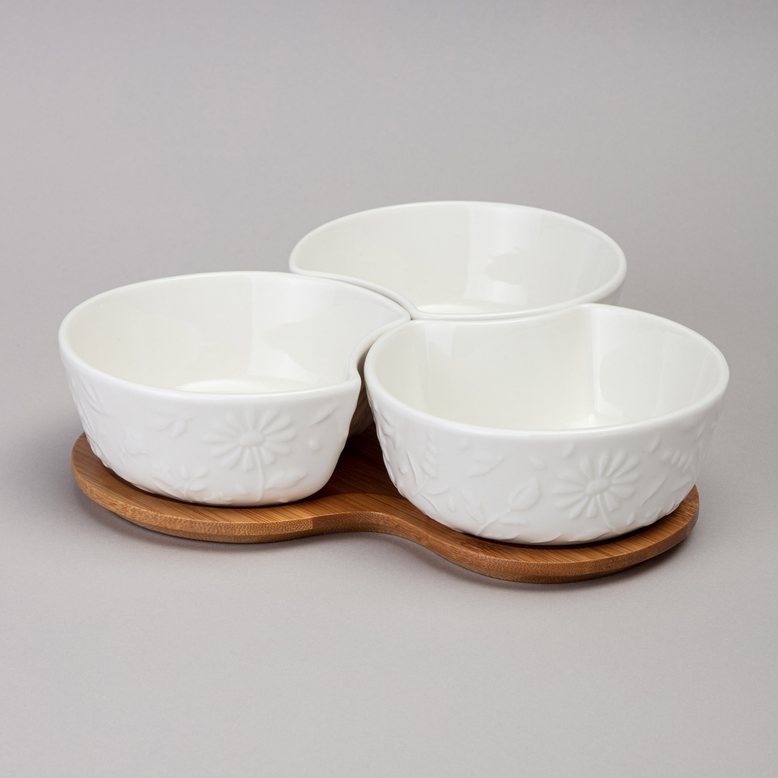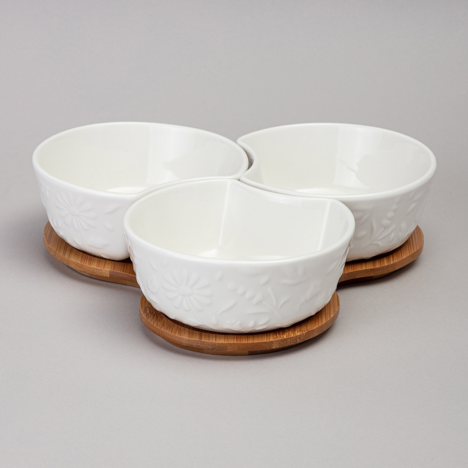 МЕНАЖНИЦА 3 СЕКЦИИ LEFARD "FLOWERS STORY" НА ДЕРЕВ. ПОДСТАВКЕ 22*22*6 СМ 250 МЛ