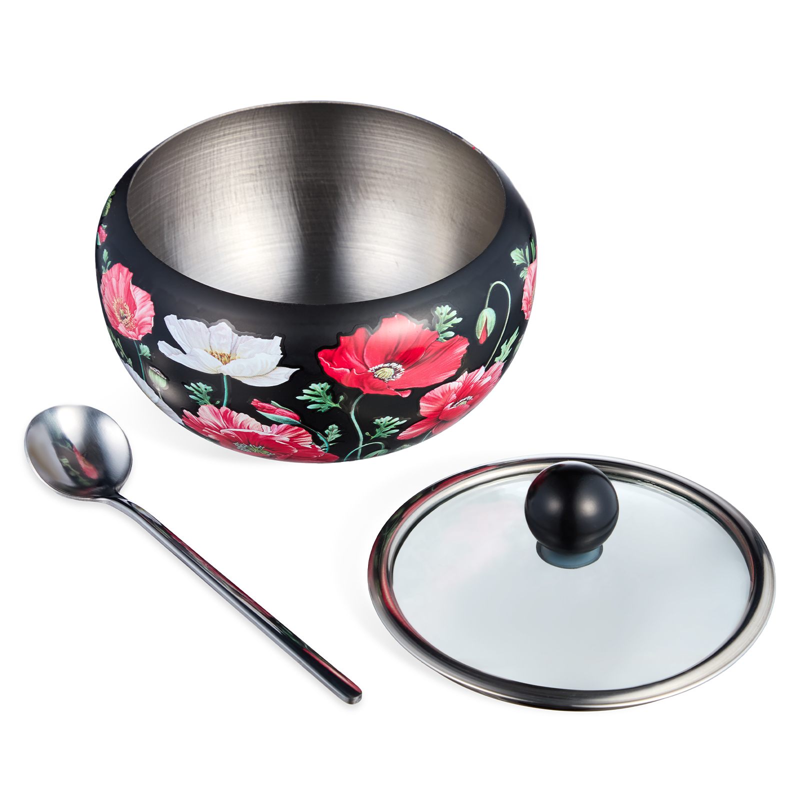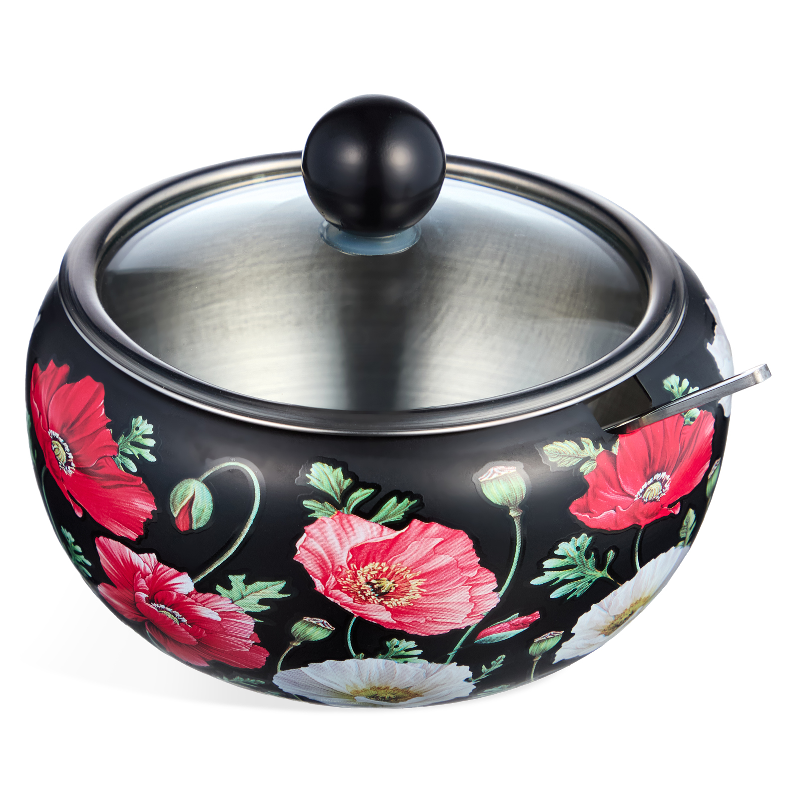 Удобная ручка на крышке облегчает открывание сахарницы.