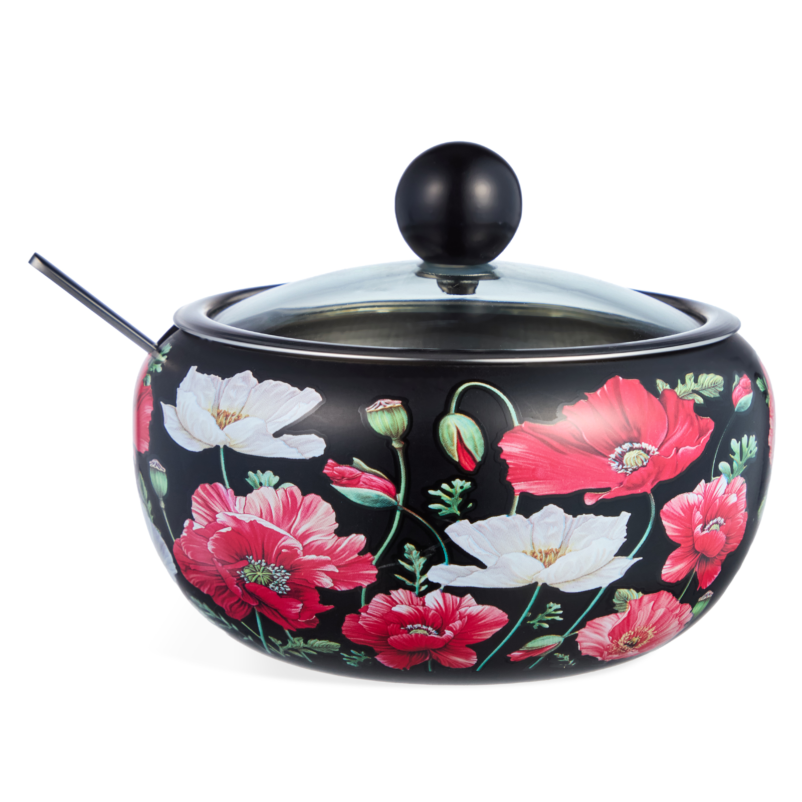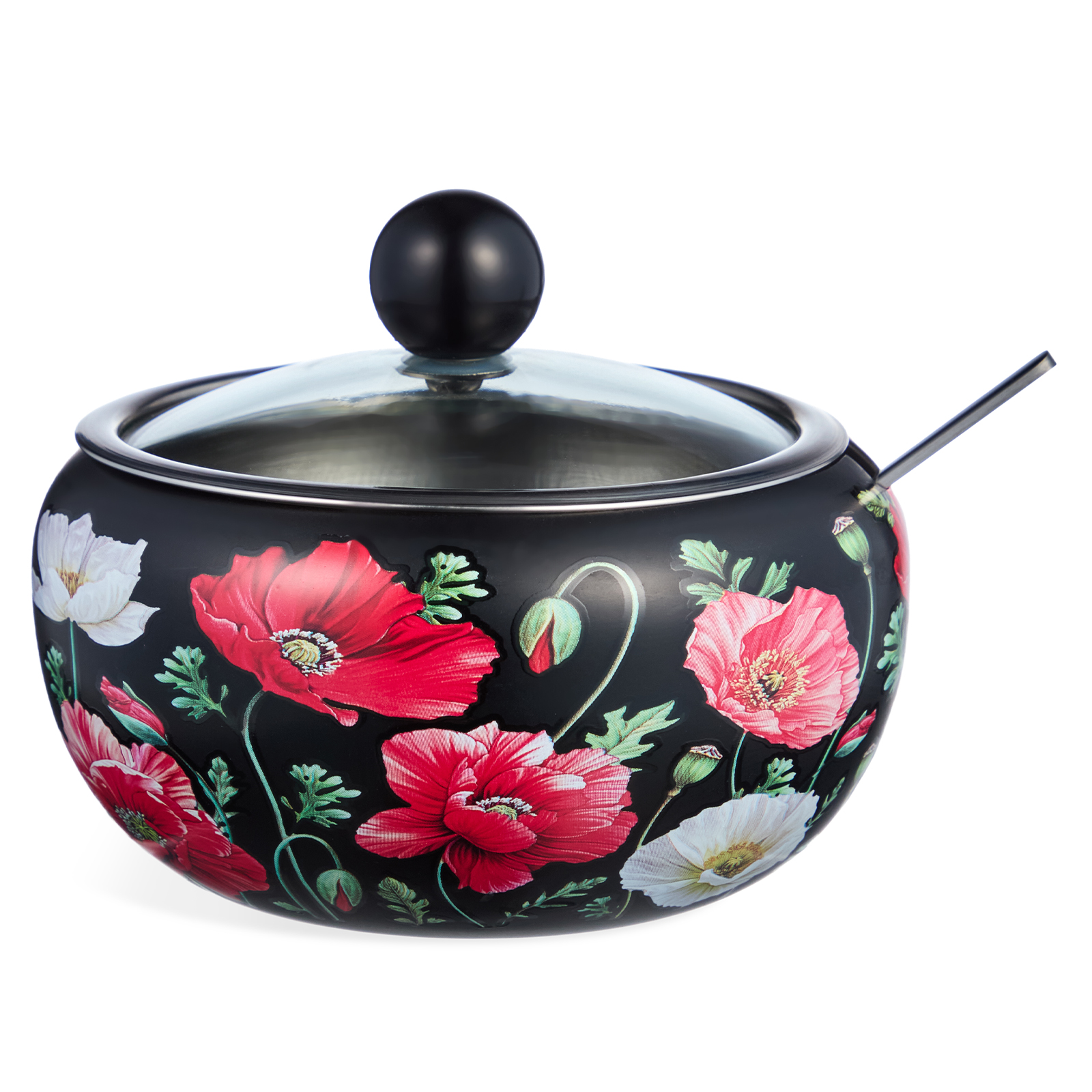 Широкое горло и округлая форма позволяют удобно хранить, зачерпывать сахарный песок или доставать кусочки сахара.