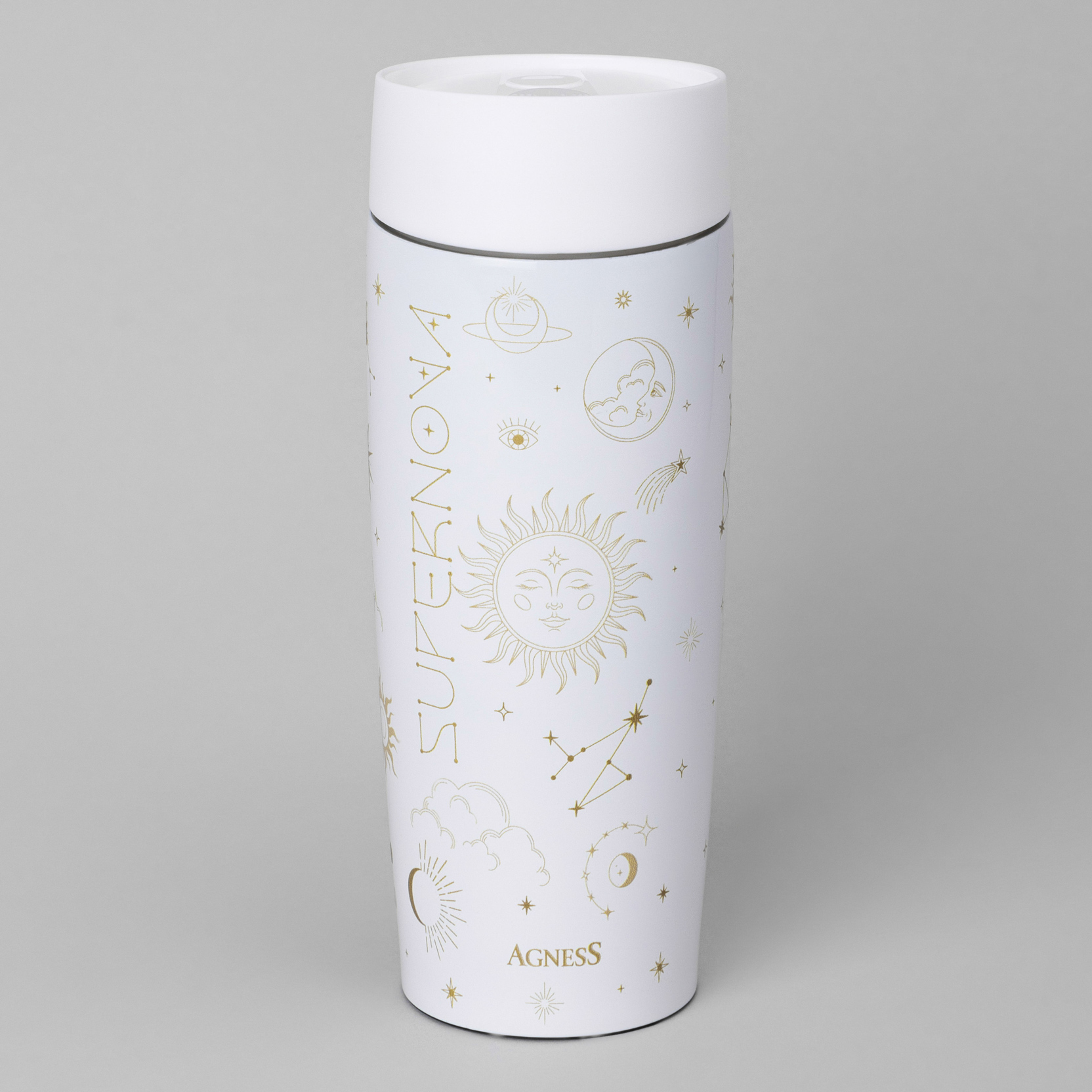 ТЕРМОКРУЖКА AGNESS "SUPERNOVA WHITE" 360МЛ, КОЛБА НЕРЖ.СТАЛЬ 18/10