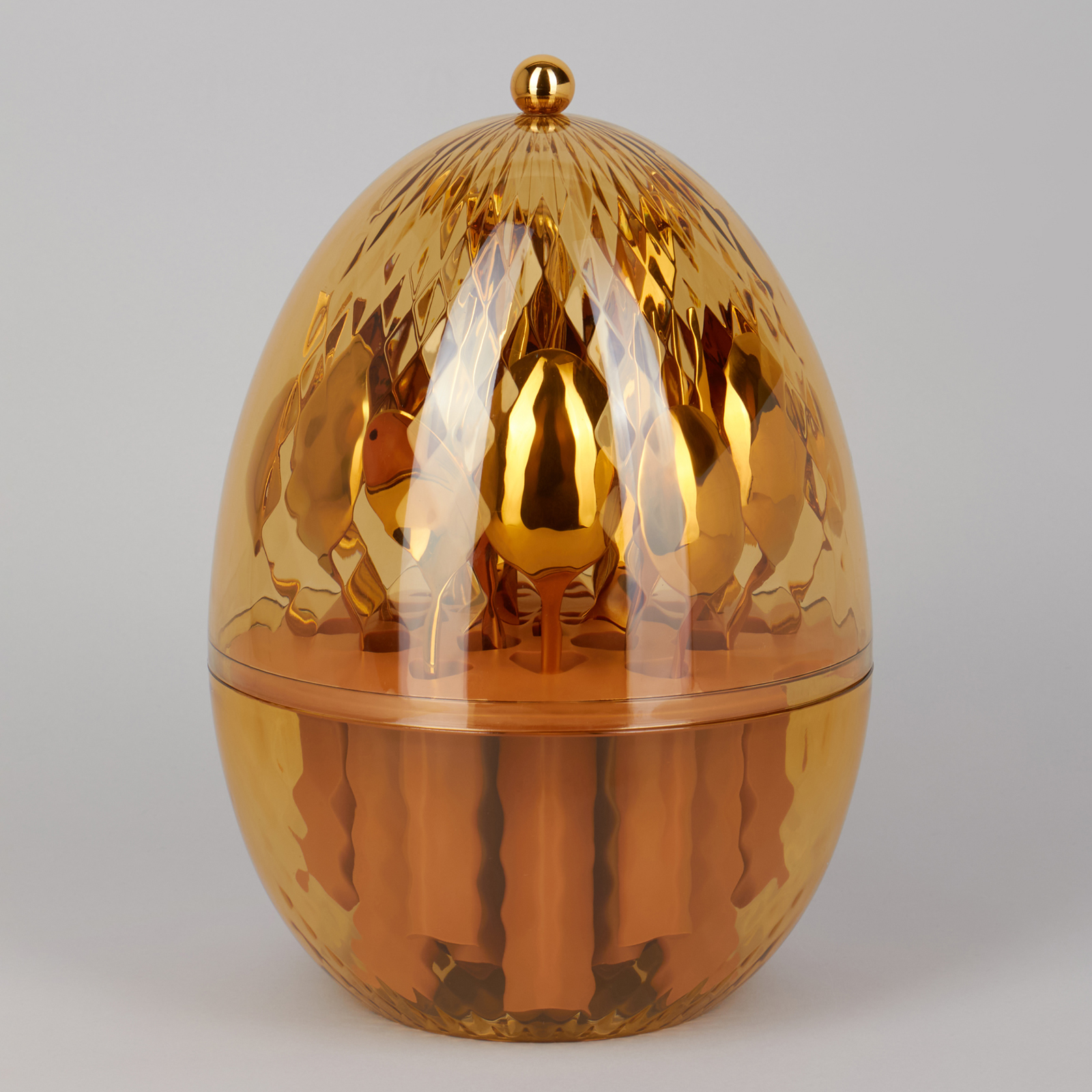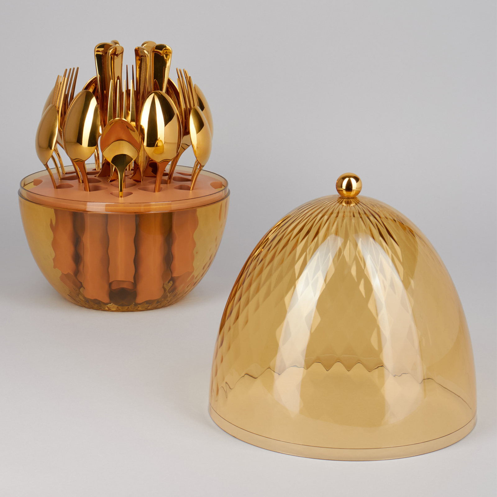 Премиальный набор столовых приборов на 6 персон. Высокое качество обеспечит длительный срок службы и надежность в эксплуатации. Безупречный внешний вид, эргономичность, удобная форма столовых приборов подойдет для торжественной сервировки. Удобная вращающаяся подставка в форме яйца позволит хранить все предметы компактно, легко и доступно. Сделайте сервировку по-настоящему выдающейся!