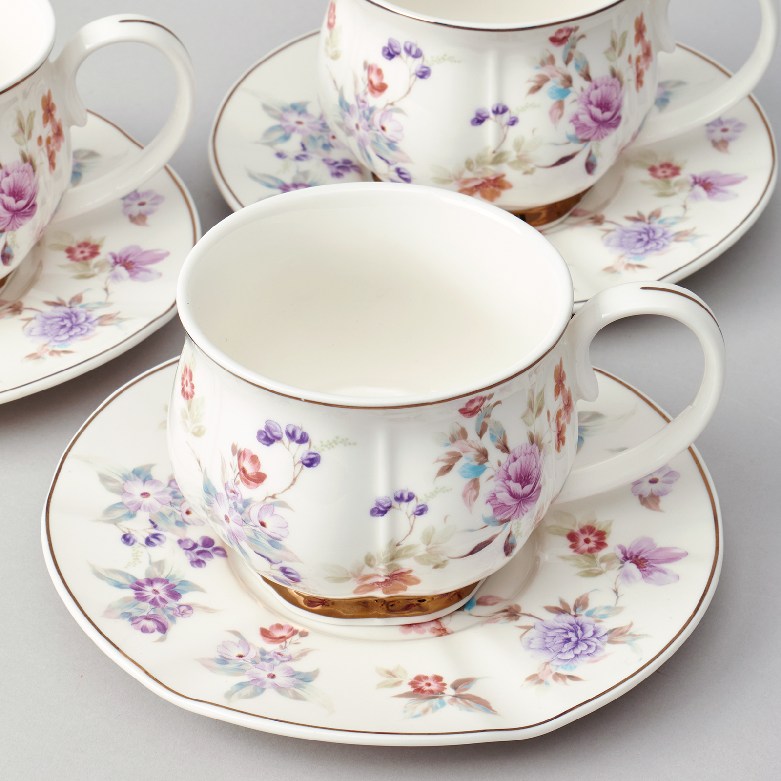 ТМ LEFARD коллекция "Времена года" выполнена из тонкостенного фарфора. Стильная форма, вместительный объем, модное сочетание пастельных тонов и цветочной деколи, отделка золотом - все это делает коллекцию неотразимой и очень привлекательной. Форма и цвет посуды способны оказать магическое действие на всех, кто находится за столом. «Времена года» могут согреть душу, создать тепло и уют в доме. Это прекрасный подарок. Продукция прошла сертификацию и безопасна для контакта с пищевыми продуктами. Можно ставить в микроволновую печь, не рекомендуется мыть в посудомоечной машине. Комплектность: 6 чашек 250 мл., 6 блюдец 15*7,5 см.