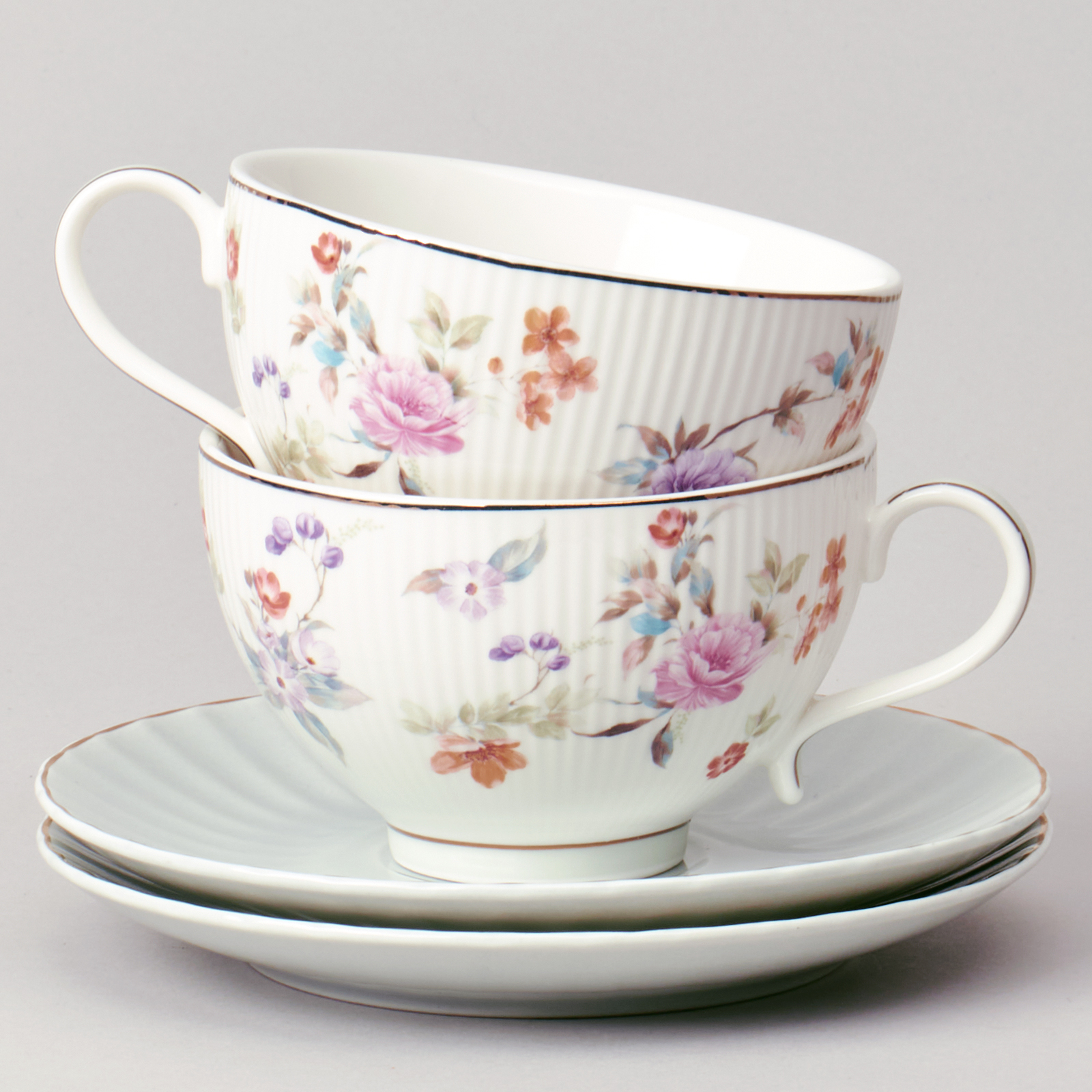 ТМ LEFARD коллекция "Времена года" выполнена из тонкостенного фарфора. Стильная форма, вместительный объем, модное сочетание пастельных тонов и цветочной деколи, отделка золотом - все это делает коллекцию неотразимой и очень привлекательной. Форма и цвет посуды способны оказать магическое действие на всех, кто находится за столом. «Времена года» могут согреть душу, создать тепло и уют в доме. Это прекрасный подарок. Продукция прошла сертификацию и безопасна для контакта с пищевыми продуктами. Можно ставить в микроволновую печь, не рекомендуется мыть в посудомоечной машине. Комплектность: 2 чашки 250 мл., 2 блюдца 15*7 см.