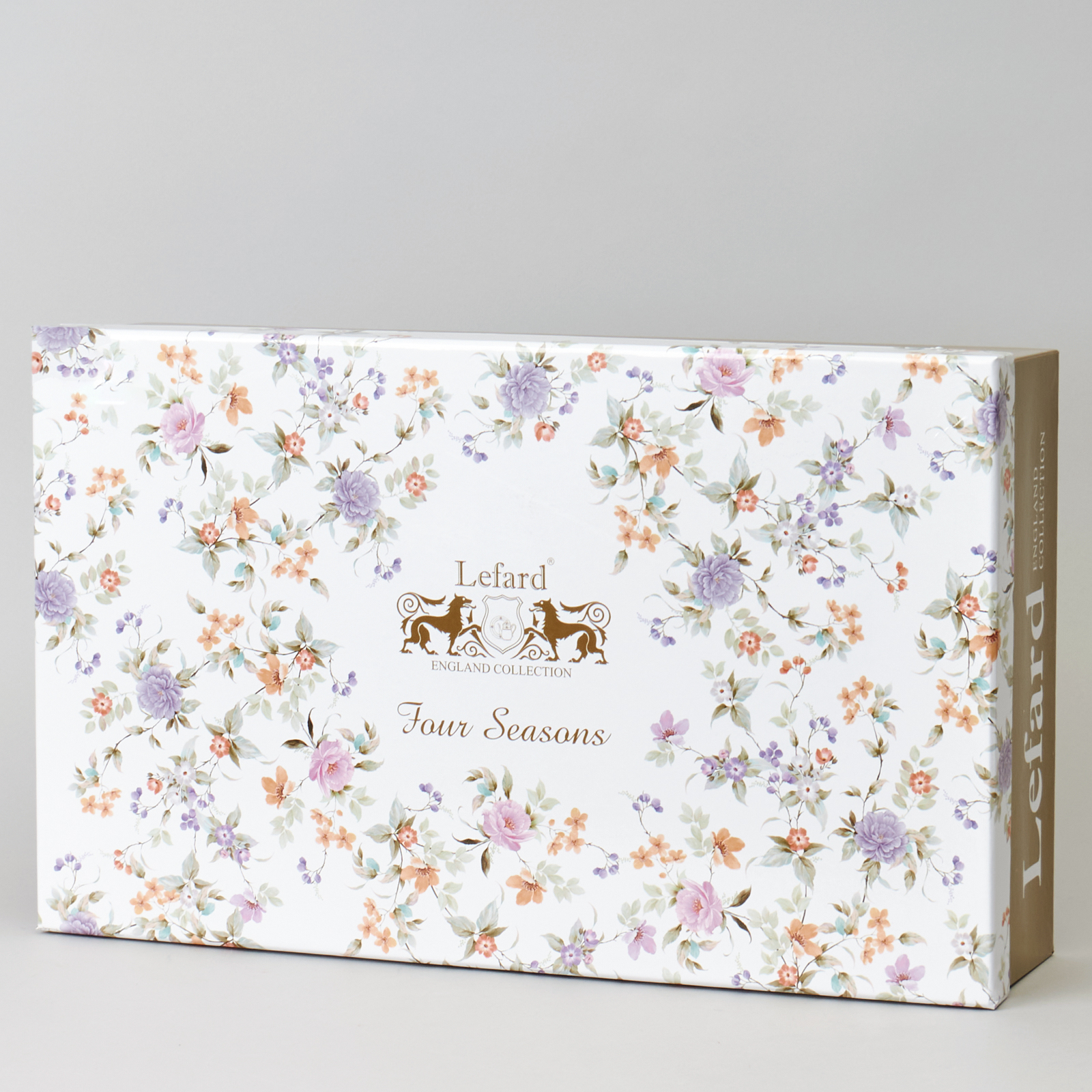 ТМ LEFARD коллекция "Времена года" выполнена из тонкостенного фарфора. Стильная форма, вместительный объем, модное сочетание пастельных тонов и цветочной деколи, отделка золотом - все это делает коллекцию неотразимой и очень привлекательной. Форма и цвет посуды способны оказать магическое действие на всех, кто находится за столом. «Времена года» могут согреть душу, создать тепло и уют в доме. Это прекрасный подарок. Продукция прошла сертификацию и безопасна для контакта с пищевыми продуктами. Можно ставить в микроволновую печь, не рекомендуется мыть в посудомоечной машине. Комплектность: 6 чашек 250 мл., 6 блюдец 15*7 см.