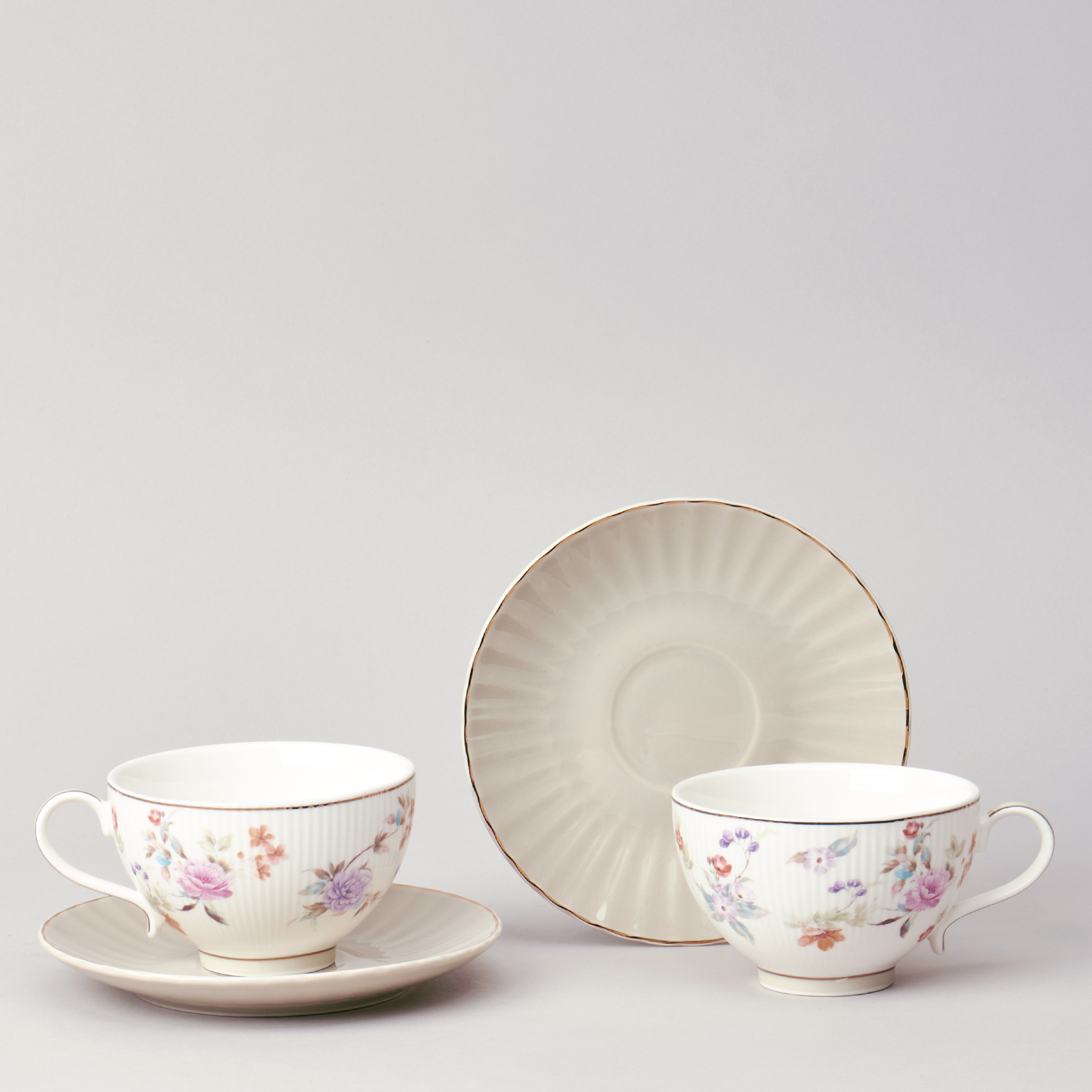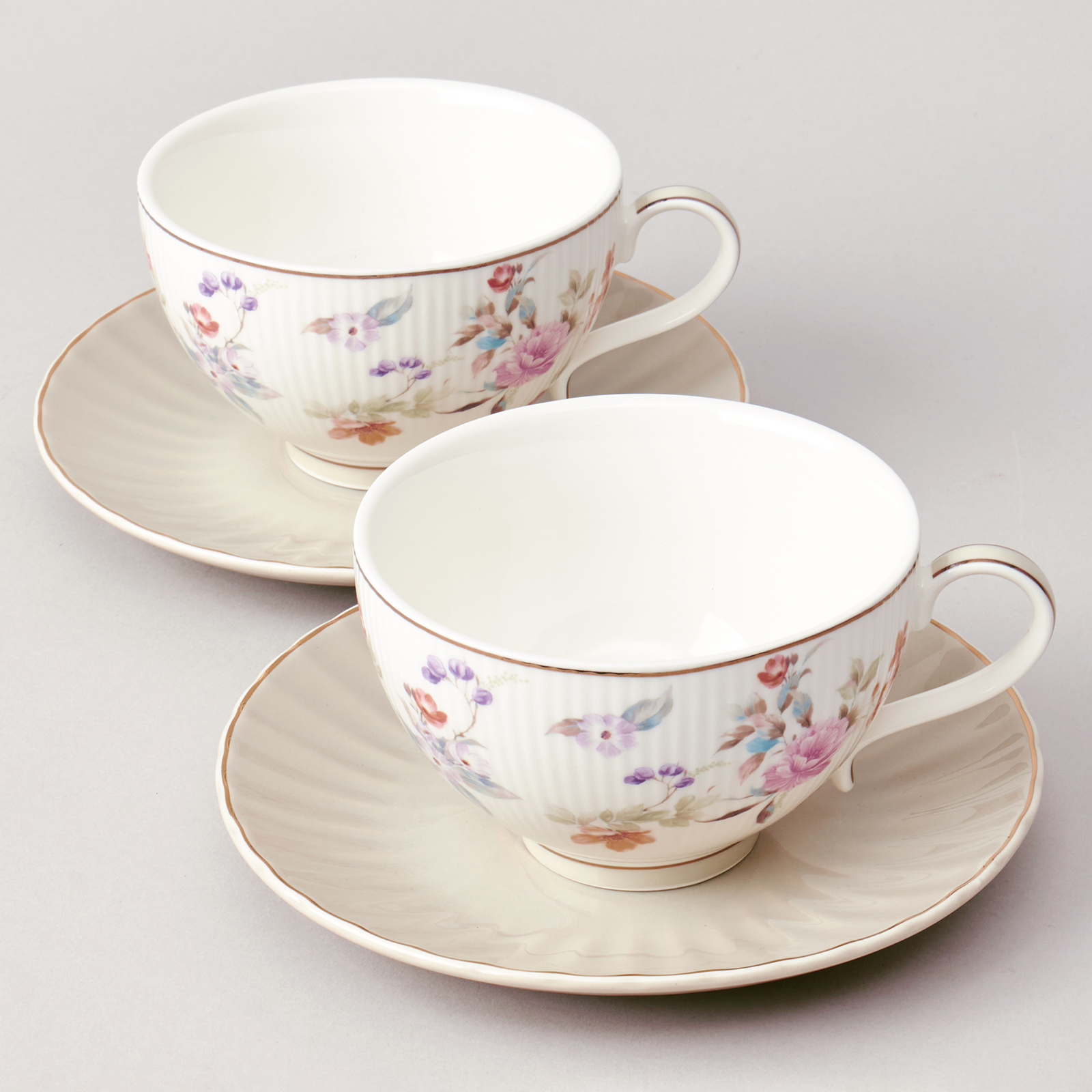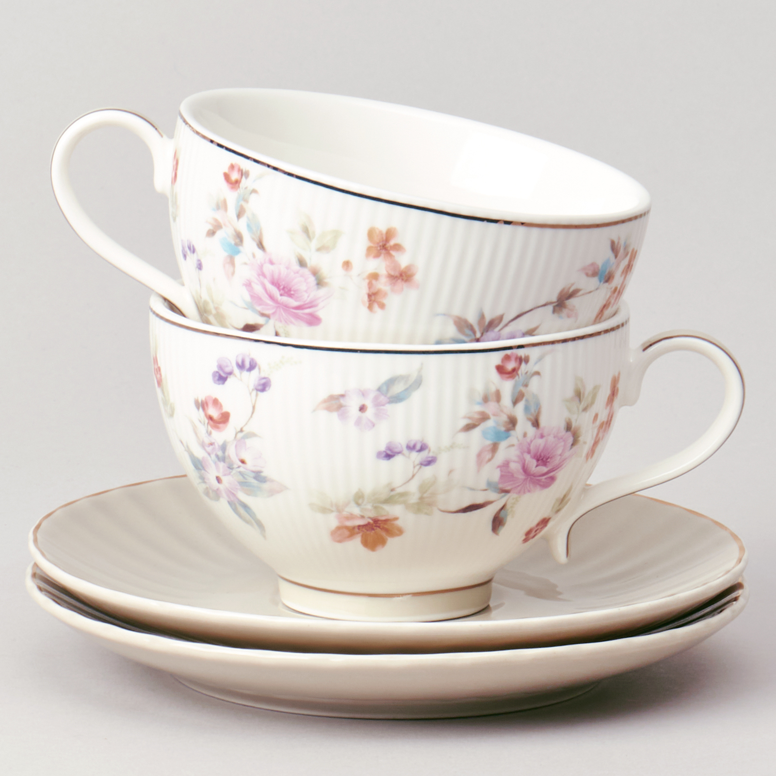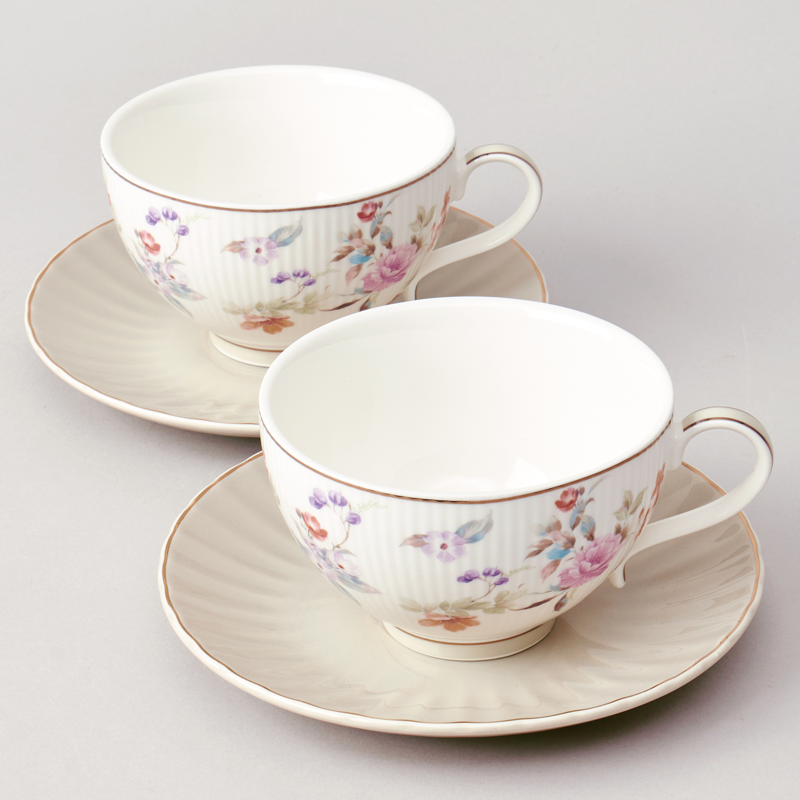 ТМ LEFARD коллекция "Времена года" выполнена из тонкостенного фарфора. Стильная форма, вместительный объем, модное сочетание пастельных тонов и цветочной деколи, отделка золотом - все это делает коллекцию неотразимой и очень привлекательной. Форма и цвет посуды способны оказать магическое действие на всех, кто находится за столом. «Времена года» могут согреть душу, создать тепло и уют в доме. Это прекрасный подарок. Продукция прошла сертификацию и безопасна для контакта с пищевыми продуктами. Можно ставить в микроволновую печь, не рекомендуется мыть в посудомоечной машине. Комплектность: 2 чашки 250 мл., 2 блюдца 15*7 см.