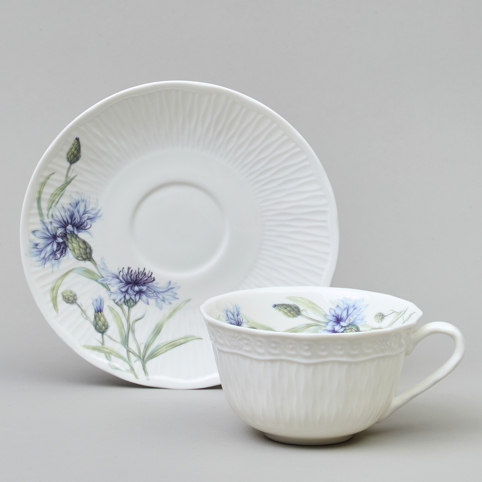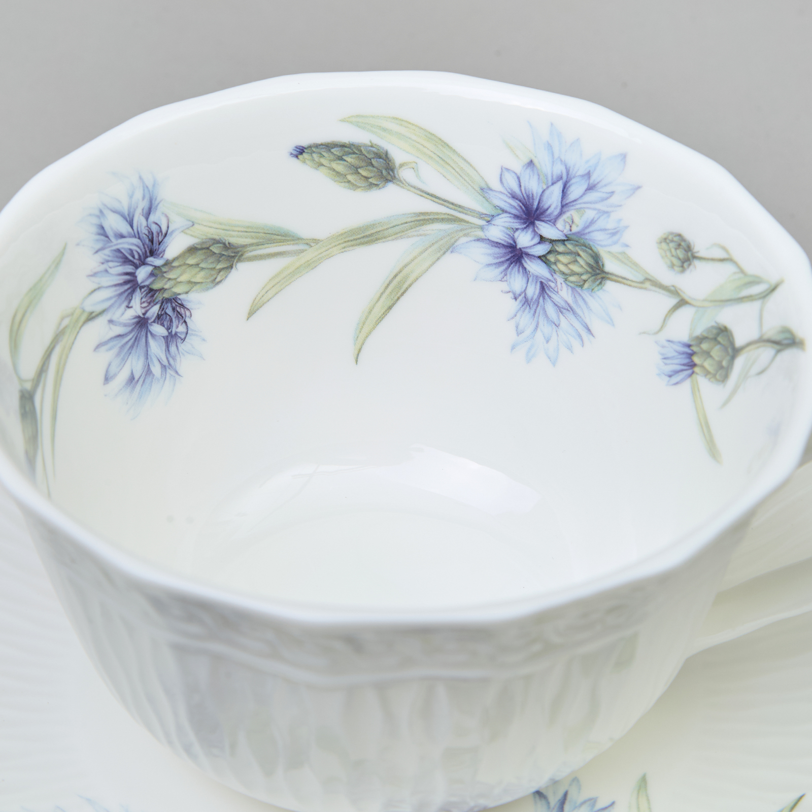 «Васильки» ТМ LEFARD - уникальная коллекция лёгкого, тонкого, прозрачного и прочного фарфора. Изящная рельефная сетка с красивым кантом, сверкающая глазурь. Эксклюзивный дизайн полевого василька небесного цвета, создающего романтическое настроение. Оригинальное размещение дизайна на рельефной части изделий, что создает дополнительную игру рисунка и объем. Широкий ассортимент позволяет сервировать обеденный стол, вечернее чаепитие – идеальный вариант для всех случаев сервировки. Коллекция представлена чайным сервизом, чайными парами удобных объемов, десертными тарелками. Стильная цветная коробка, прекрасный подарок. Все изделия прошли сертификацию. Безопасны для контакта с пищевыми продуктами. Можно смело использовать в микроволновой печи и мыть в посудомоечной машине.