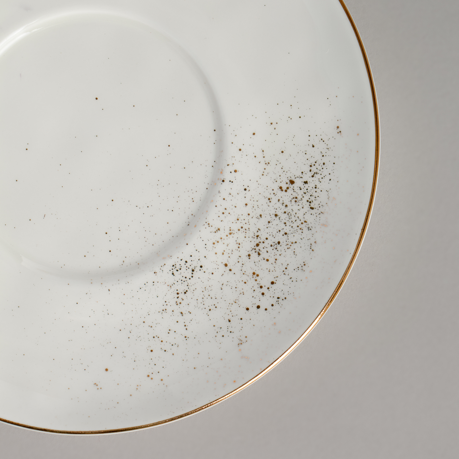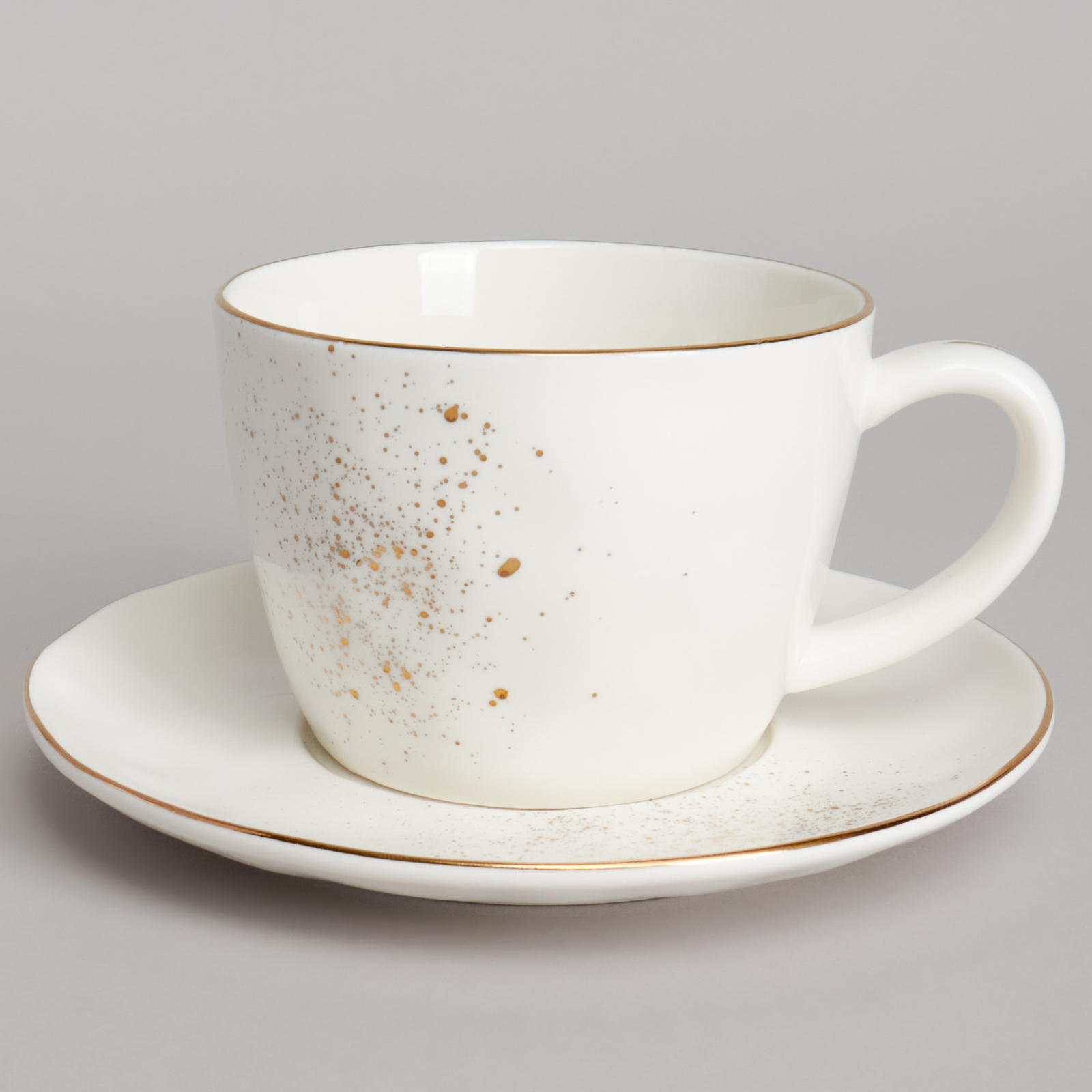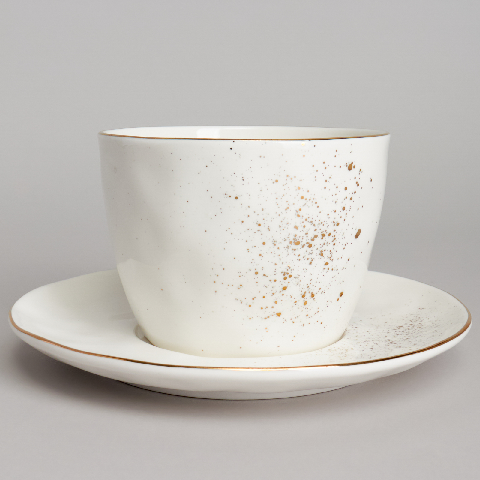 Коллекция GOLD мягкая и современная. Тонкая золотая окантовочная полоса, мелкие золотые брызги на теле изделий, новые мятые и мягкие формы делают GOLD нежной коллекций для тех, кто элегантен, стилен и решителен. Использовать мягкие моющие средства. Не рекомендуется мыть в посудомоечной машине, ставить в микроволновую печь.