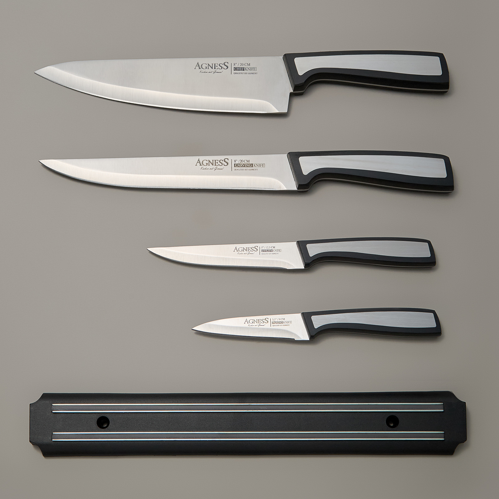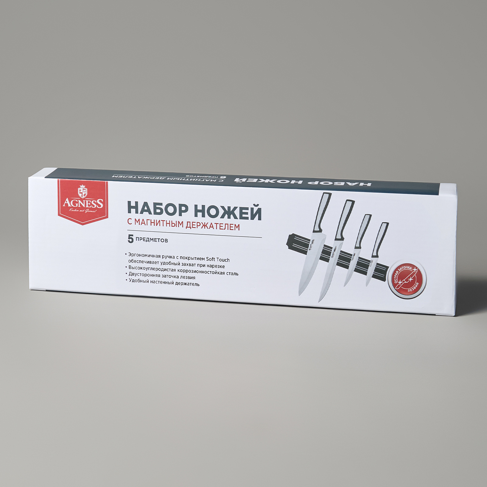 НАБОР НОЖЕЙ AGNESS С МАГНИТНЫМ ДЕРЖАТЕЛЕМ, 5 ПРЕДМЕТОВ